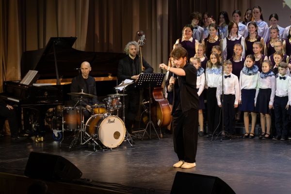В концерте приняли участие хоровые коллективы детской школы искусств имени Исаака Дунаевского и детской школы искусств имени Бородина. В сопровождении инструментального ансамбля в составе Даниила Хазана (фортепиано), Романа Салмасова (контрабас) и Вячеслава Холодионова (ударные) ребята исполнили знаменитые песни двух поколений семьи Дунаевских, а также коллаж на темы Дунаевского-отца авторства современного композитора Анны Кузьминой.
