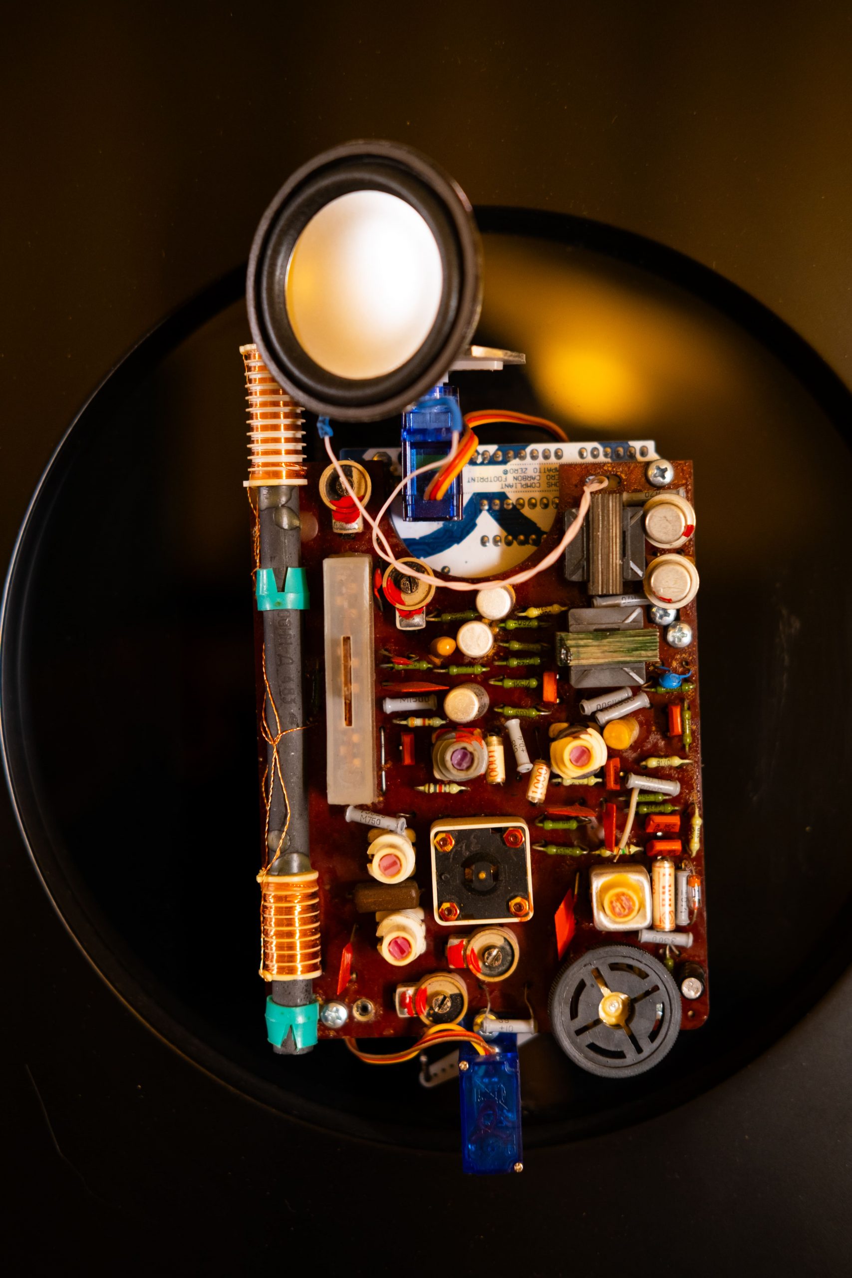 «Сергей Филатов работает на стыке инженерии и искусства, исследуя физические свойства материалов, звук, форму, движение и пространство. Его процесс начинается со сбора и изучения объектов, от промышленных корпусов до фрагментов бытовой техники, и постепенно приводит к созданию новых звуковых форм. Источником может стать как физическое явление, так и уже существующий механизм, чьи звуки мы привыкли не замечать.