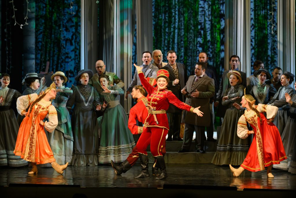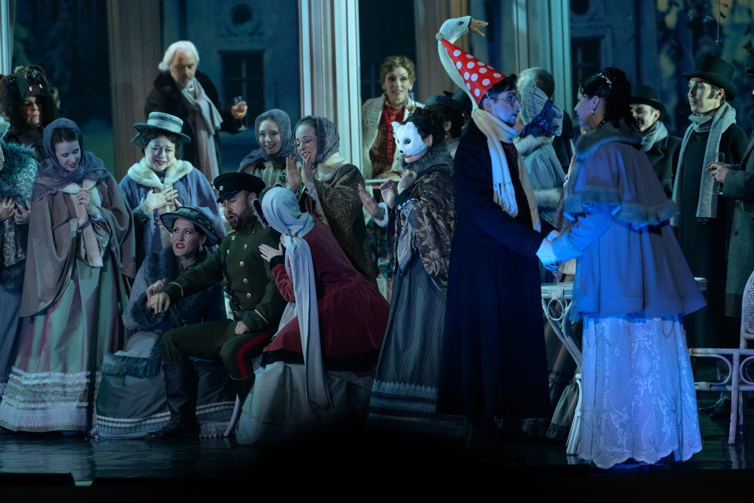 Привезли в столицу и балет театра: Роман Миронов поставил для него крайне симпатичное «народное» трио под «Уж как по мосту-мосточку», стильные кордебалетные полонез и экосез в сцене бала, где коллектив не преминул показать свой достойный танцевальный уровень (репетитор балета – Даниил Соколов).