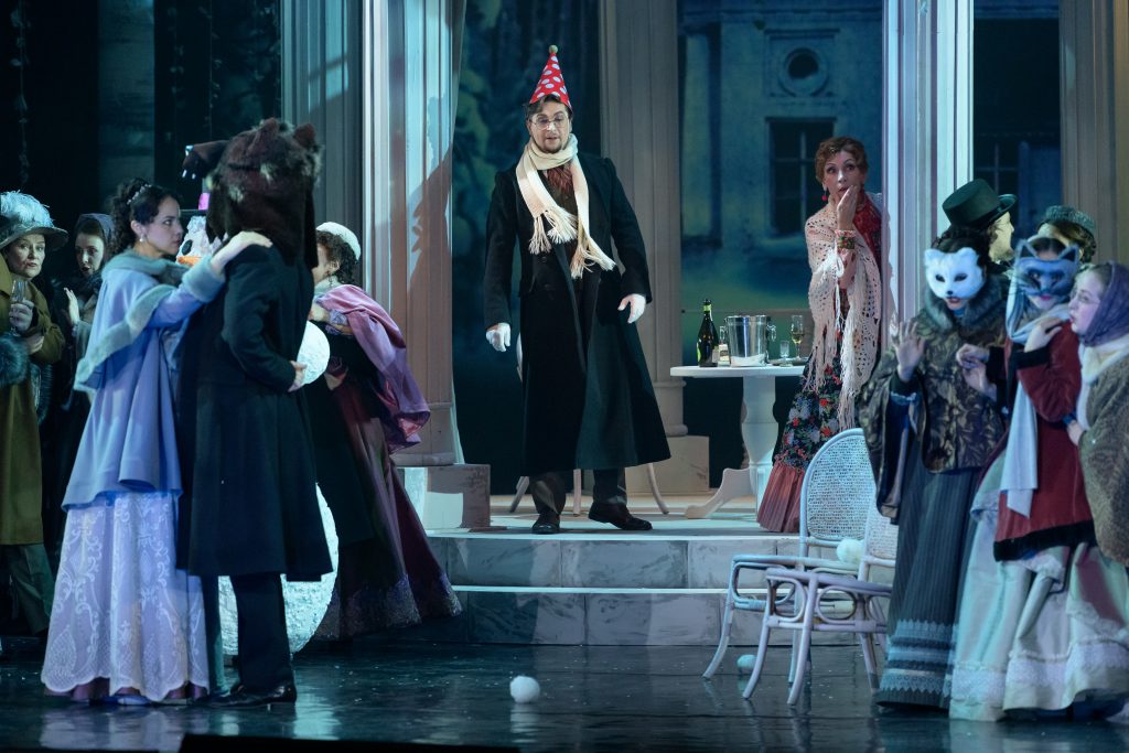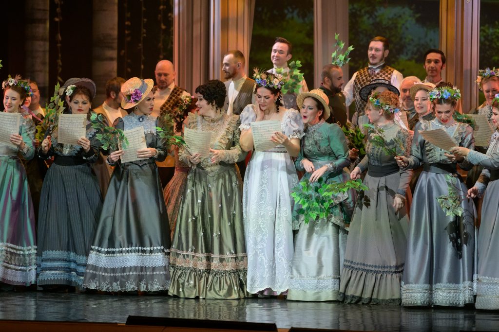 Отменную культуру пения, монолитность, прекрасную дикцию продемонстрировал хор театра (хормейстеры – Ольга Рочева и Алла Швецова), который в спектакле Александрова задействован в ролях аристократов – друзей семейства Лариных и в первой, и в третьей картинах (именно из их уст звучат крестьянские хоры).
