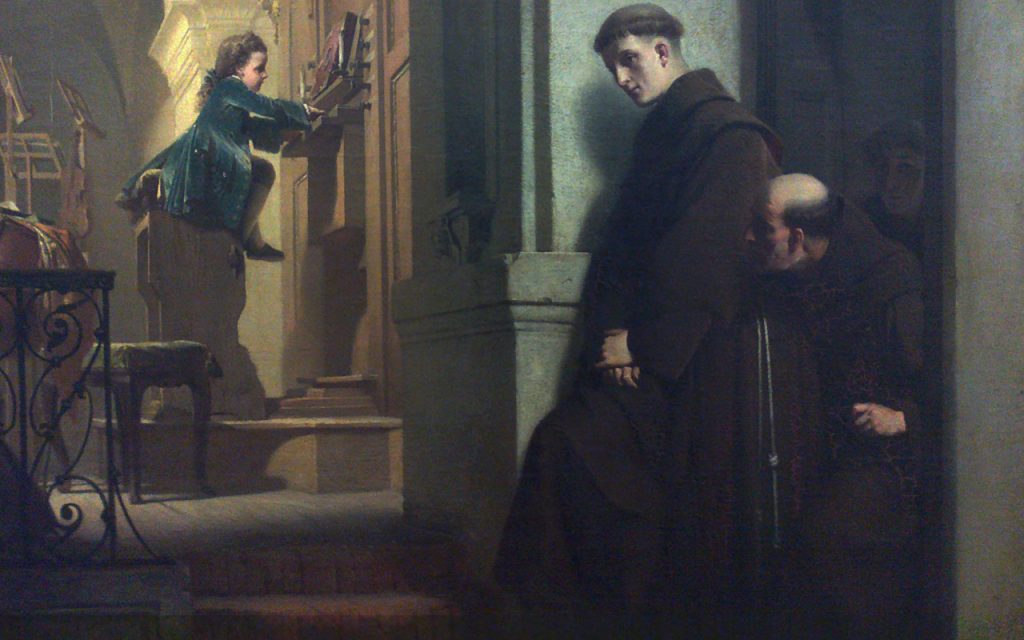 Генрих Лоссов. Юный Моцарт играет на органе, 1864. Земельный музей Верхней Австрии