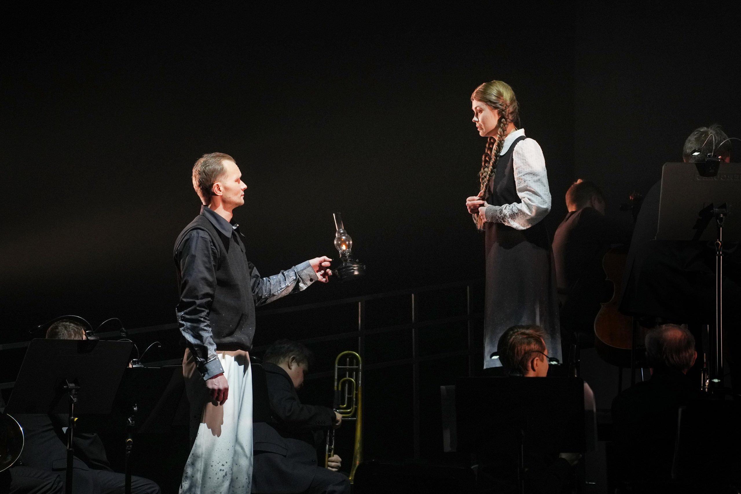 В московском «Ленкоме» труппа пытается «зарыть топор войны», закрыть гештальт и совместно работать дальше. В Томске говорили о вечных ценностях. По сюжету в блокадном Ленинграде репетируют премьеру Седьмой симфонии Шостаковича, и процесс подготовки становится лакмусовой бумагой отношения к профессии, к жизни в минуты катастрофы. Для филармонической публики, пришедшей в драмтеатр, «манком» в спектакле режиссера Олега Молитвина стало участие семнадцати артистов Томского симфонического оркестра. Они сидели в специальной выгородке у задника сцены как одна из групп оркестра (а основное действие – перепалки с дирижером, общение между собой разворачивается на авансцене): по ходу истории они в реальном времени играли фрагменты Седьмой симфонии Шостаковича (филармония подготовила специальные камерные аранжировки), добавляя реалистичность происходящему.