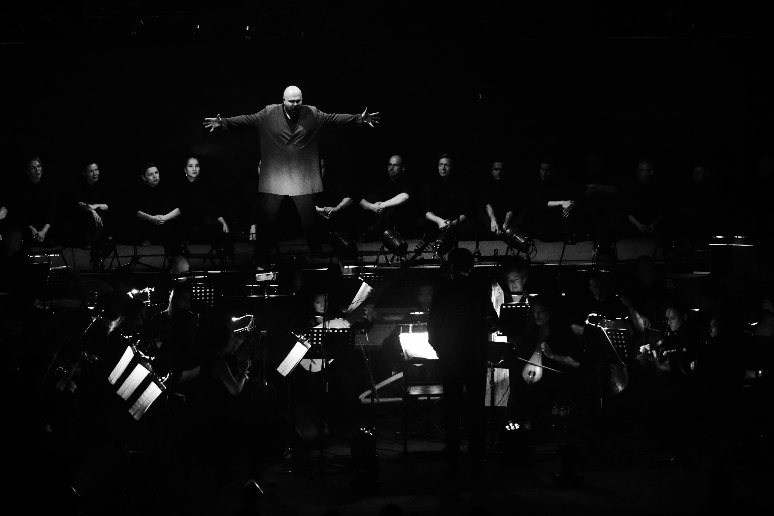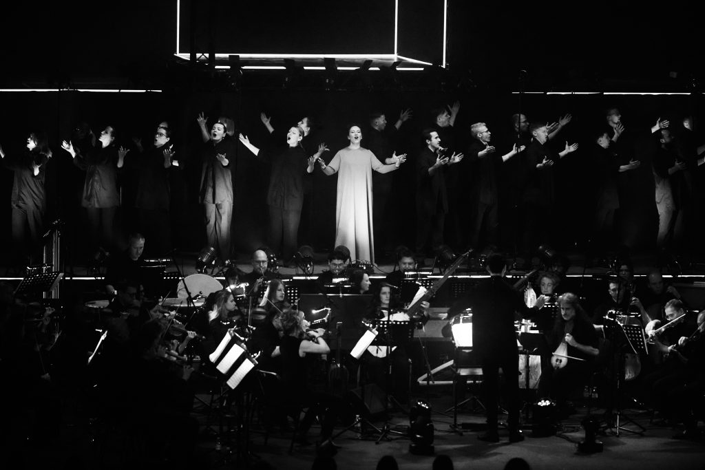 Оркестр, хор и танцевальная труппа – вся «семья» musicAeterna – была в сборе на сцене, а порой и за ее пределами, заполняя пространство зала. Хореографический почерк Валентины Луценко легко узнаваем – из проекта в проект он сохраняет особую экспрессию. Ее пластический язык рождает эмоциональные аффекты, обретающие телесность: медленная, тягучая пластика, движения, будто проходящие сквозь время. Порой казалось, что танцоры сошли с фресок Сикстинской капеллы; в другие моменты – играли, как дети, или растворялись в эротически напряженных дуэтах. Такая хореография придавала церемонии зрелищность, но не перегружала ее. Здесь танец был не самоцелью, а еще одним выразительным инструментом в общей партитуре спектакля.