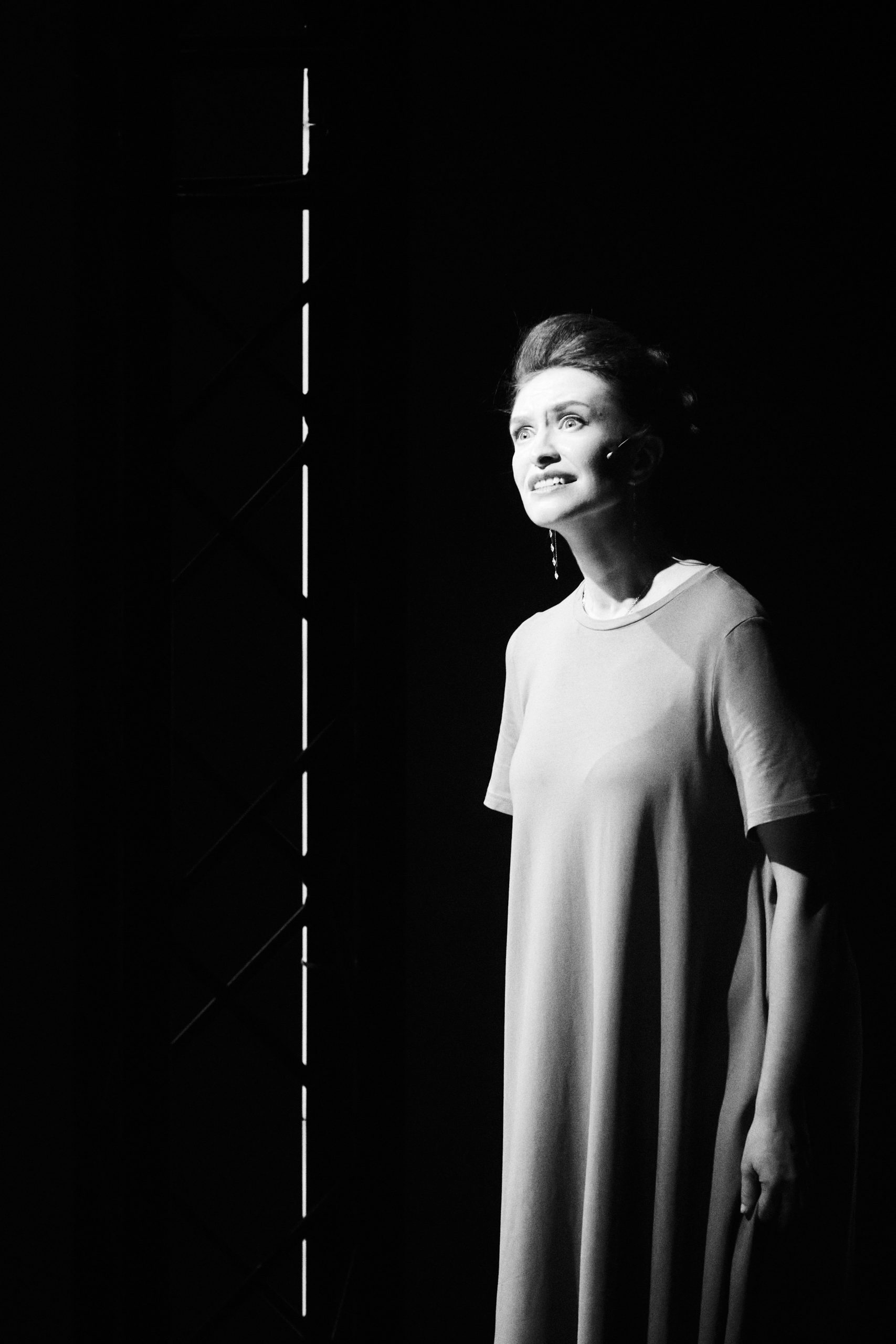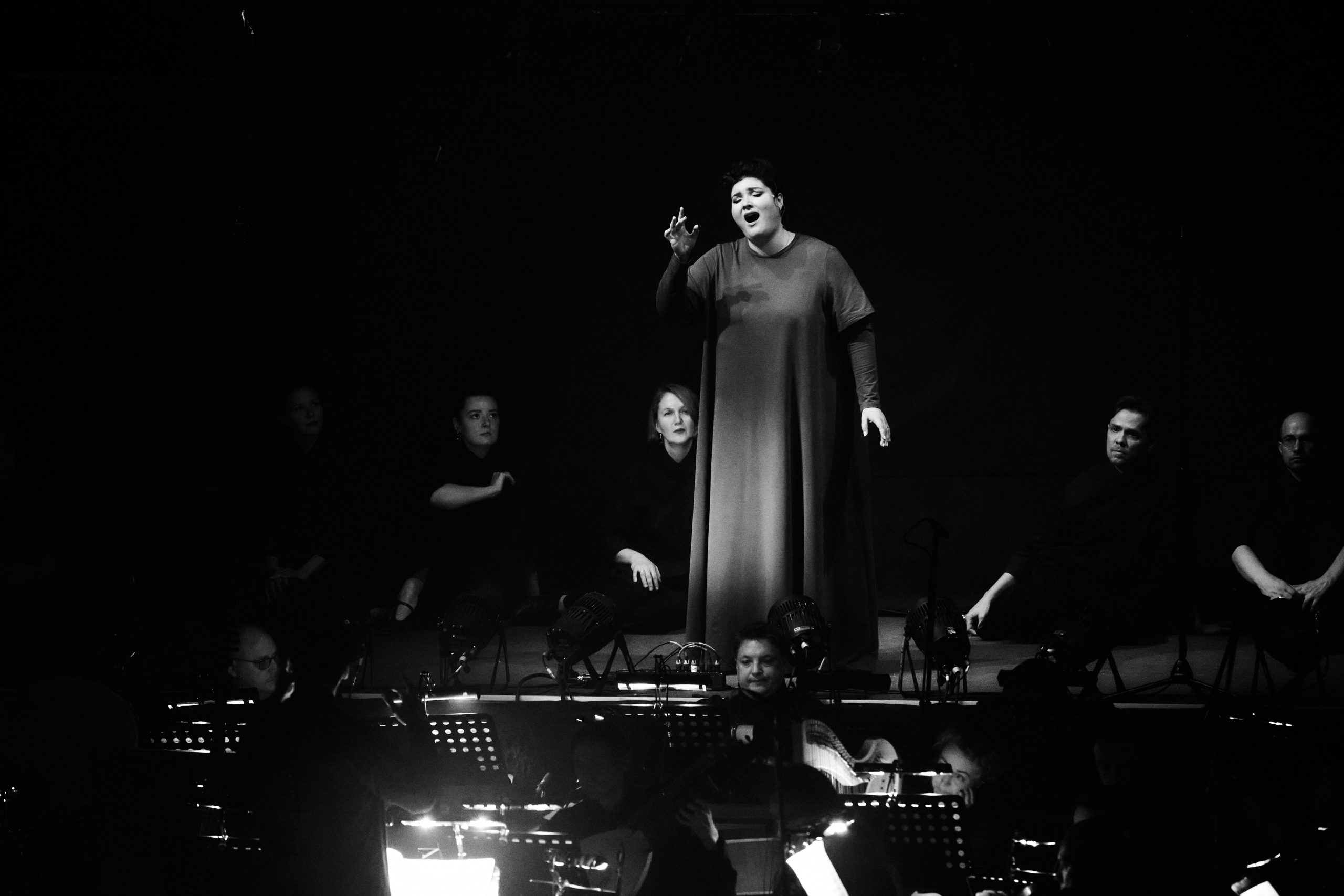 Хор тоже не оставался статичным: он то огибал трехуровневую сцену, то расходился по группам, то плавно возносил руки к воображаемому Господу, становясь частью общей сценической архитектуры.