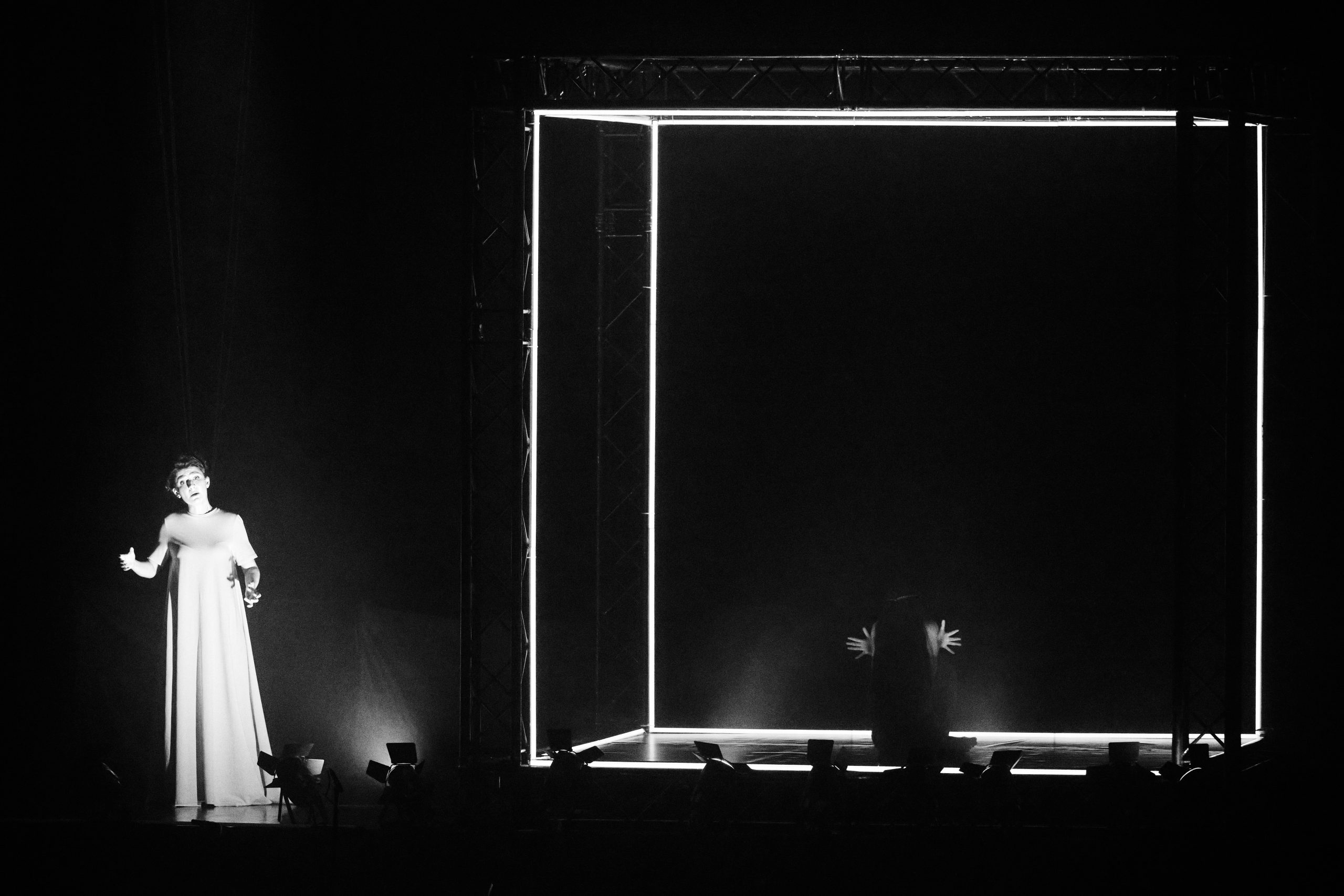 Впервые программу Hændel представили летом в Северной столице, а затем – на Дягилевском фестивале в Перми. Судя по рецензиям, сценографию и некоторые художественные решения впоследствии скорректировали. Если в ранней версии на экране появлялись графические фрагменты портрета Генделя – силуэт, черты лица, – то теперь сцену определяла единственная доминанта: пустой неоновый куб без проекций. Любопытно, что именно этот минималистичный элемент вызвал больше всего споров: часть критиков сочла визуальный образ чрезмерным, даже нарочито эксцентричным. Похоже, Курентзис и его команда прислушались к отзывам – в новой версии куб выглядел стильно, органично и стал символическим порталом, связывающим генделевский мир с нашим.