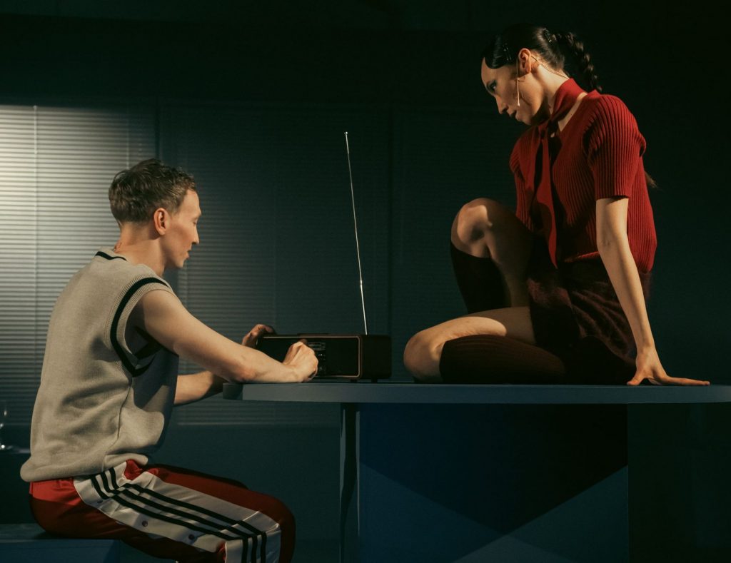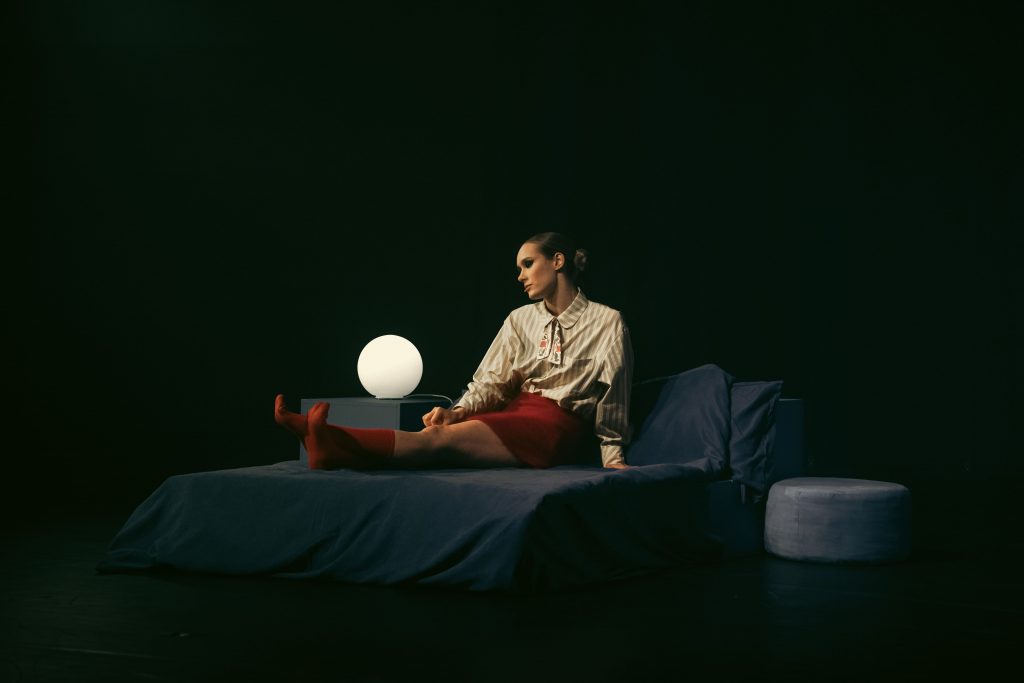 Начался спектакль довольно привычным для MA Dance образом: на сцене – комната (в этот раз тотально синяя, на пару тонов светлее, чем Ив Кляйн Blue; художник-постановщик – Юлия Орлова), в комнате – двое. Он (Алексей Слуцкий) настраивает радио, она (Айгуля Бузаева) манко танцует, пытаясь переключить его внимание на себя. Танцует под пробивающиеся через радиопомехи хиты о любви, среди которых и Love Will Tear Us Apart – привет одноименному перформансу, с которого началась предыстория труппы. Она садится к нему за стол, и он начинает диалог, самый обыкновенный: