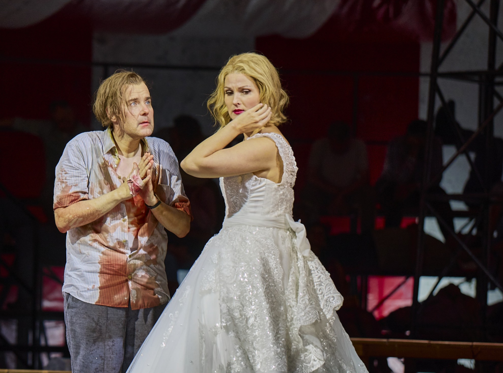 Да, зрители, ностальгирующие о классической постановке Отто Шенка, не увидят на сцене ни народных костюмов, ни народных танцев, но зажигательная музыка Сметаны позволяет команде постановщиков придумать ни менее увлекательное воплощение народных гуляний: «танец комедиантов» в начале третьего акта оборачивается головокружительным цирковым шоу (выходящие на поклон акробаты по праву заслужили гром зрительских аплодисментов). Все это, конечно, подогревается самой партитурой классика чешской музыки, и дирижер Томаш Ханус вместе с Венским филармоническим оркестром выжимает из комической оперы Сметаны все соки и контрасты: по-россиниевски стремительная увертюра вливается в не менее стремительную хоровую сцену (хотя жгучий темп оборачивается скорее противостоянием хора и оркестра, чем согласным музицированием), и все эти зажигательные галопы, скочны и фурианты соседствуют с певучими лирическими фрагментами, любовно подсвечиваемыми дирижером. Эта калейдоскопная контрастность как нельзя лучше поддерживается и молодой командой солистов – в сольных ариях, дуэтах и по-моцартовски динамичных ансамблях. Прекрасны буффонные роли болтливого свата Кецала (крепкий и звучный бас Петер Келльнер) и меланхоличного заики Вашека (жалостливый и убедительно комичный тенор Михаэль Лауренц), его назойливая мать Гата (Моника Бохинек), влюбленный, но не упускающий своей выгоды Еник (убедительный по исполнению, но чуть тускловатый по краске тенор Паволь Бреслик) и, конечно, главная звезда этой постановки – словацкая сопрано Славка Замечникова в роли Маженки. Ее уверенное сценическое обаяние и изумительный сильный, звонкий голос, переливающийся всеми оттенками веселого флирта и девичьей кручины, чистое интонирование и естественная ясность тембра (так и слышишь ее в партии Снегурочки) становятся прочным стержнем этой сценической буффонады. По сути, оптимальный пакет для комедийной оперы – удовольствие и развлечение для уха и для глаз и идеальный повод для желающих традиционно воскликнуть: «Во что они опять превратили оригинал?!»