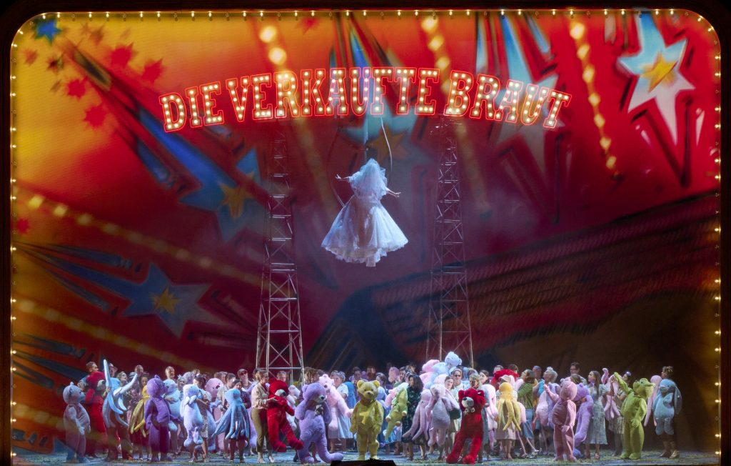 Еще несколько десятилетий назад «Проданная невеста» была одной из самых любимых и часто исполняемых опер в Вене. Стоит напомнить, что именно с венской премьеры в 1892 году к сочинению Сметаны пришла мировая слава, которую сам композитор, ценивший другие свои партитуры для музыкального театра куда выше, переживал со смешанными чувствами. Однако со времени последней постановки в Венской опере прошло долгих тридцать пять лет, и, кажется, современная публика несколько подзабыла, кто, кому, за что и под какую музыку продал ту самую невесту. Возможно, отчасти, чтобы снова приобщить венцев к оперному хиту Сметаны, новая команда решила ставить оперу не на языке оригинала, а снова на немецком, но в отличие от последней классической постановки Отто Шенка не в старом, историческом переводе, а в новом, написанном специально с максимальным приближением к чешскому либретто Карела Сабины. Одним из обоснований этого решения стал тот факт, что сам Бедржих Сметана, как и многие другие представители чешской интеллигенции второй половины XIX века, довольно посредственно владел чешским языком и в интонировании оригинального либретто допустил ряд досадных ошибок.