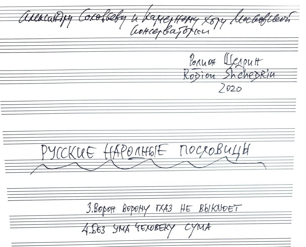 Горжусь, что Родион Константинович посвящал Камерному хору Московской консерватории и мне свои выдающиеся партитуры. И я всегда считал своим долгом немедленно откликаться, когда он присылал новые сочинения. Последние годы, когда он в основном жил за рубежом, он высылал по факсу, по электронной почте факсимиле рукописей – и это были практически безупречные, иногда с еле заметной ретушью ноты. Когда же мы репетировали, то исполняли какой-то фрагмент, посылали ему запись – и он тут же давал обратную связь, что нужно подправить. До самых деталей. Скрупулезность – одно из его главных качеств.