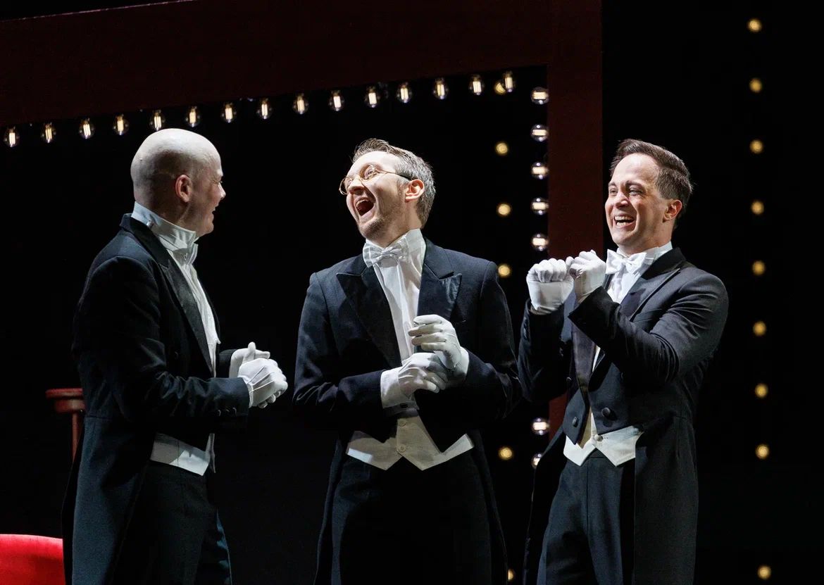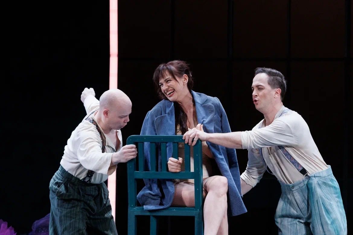 Парадокс беспечной опереточной «Фиалки» заключается в том, что для обеих женских партий нужны певицы с хорошей техникой, в карельской опере такие на вес золота, но, по счастью, имеются. Сопрано Дарья Батова с ее примадоннской статью стала идеальной обольстительно длинноногой красавицей Нинон, а мягкая лирическая сопрано Александра Королёва с терапевтической деликатностью и пронзающей нежностью проинтонировала душу компании – Виолетту. Исполнителя главной теноровой роли Рауля одолжили в театре Станиславского, откуда харизматичный Кирилл Золочевский примчался после премьеры «Орлеанской девы», где дебютировал в образе короля Карла VII. И как же им всем в целом хорошо и вольготно дурачилось вдали от оперных трагедий на территории оперетты, где они чувствовали себя нужными и любимыми. Маэстро Андрей Алексеев силой воли, обаяния и огромного опыта раскрепощал зажатый оперой оркестр, который к концу спектакля уже раскачался так, что был на себя не похож, опьяненный воздухом парижской свободы.