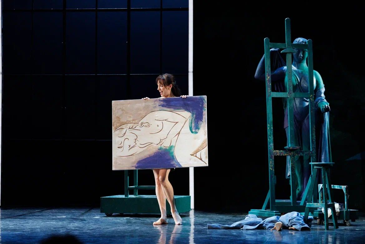 Режиссер карельской «Фиалки Монмартра» Анна Осипенко видела постановку этой оперетты в Санкт-Петербургском театре музыкальной комедии, созданную 80-летним Миклошем Синетаром в упадочно-осенних тонах, а потому свою первую «Фиалку» она справедливо решила наполнить огнями, прибегнув к помощи художника-постановщика Анвара Гумарова, знающего, как создавать «красоту из пустоты», и художника по свету Тараса Михалевского, наделяющего пространство сцены интеллектом. Вместе они сочинили туннель из Петрозаводска в Париж, построив его из светящихся несимметричных рам, а также создав еще и оптическую иллюзию подзорной трубы большой мощности. Плоскость сцены растянулась вглубь, подобно мехам французского аккордеона, позволив пространству дышать и вибрировать визуальными ассоциациями. В воздушном, отнюдь не перегруженном коллаже зеркала сцены силуэты картин импрессионистов и кубистов перемигивались с плакатными вырезками кабаре Chat Noir. На фоне светящихся рам представители парижской богемы, обитательницы Монмартра, дансерки Мулен Ружа в броских пестрых костюмах модниц и стиляг – творений художницы по костюмам Татьяной Ногиновой – словно выскакивали с полотен Мане, Пикассо, Тулуз-Лотрека, Модильяни.