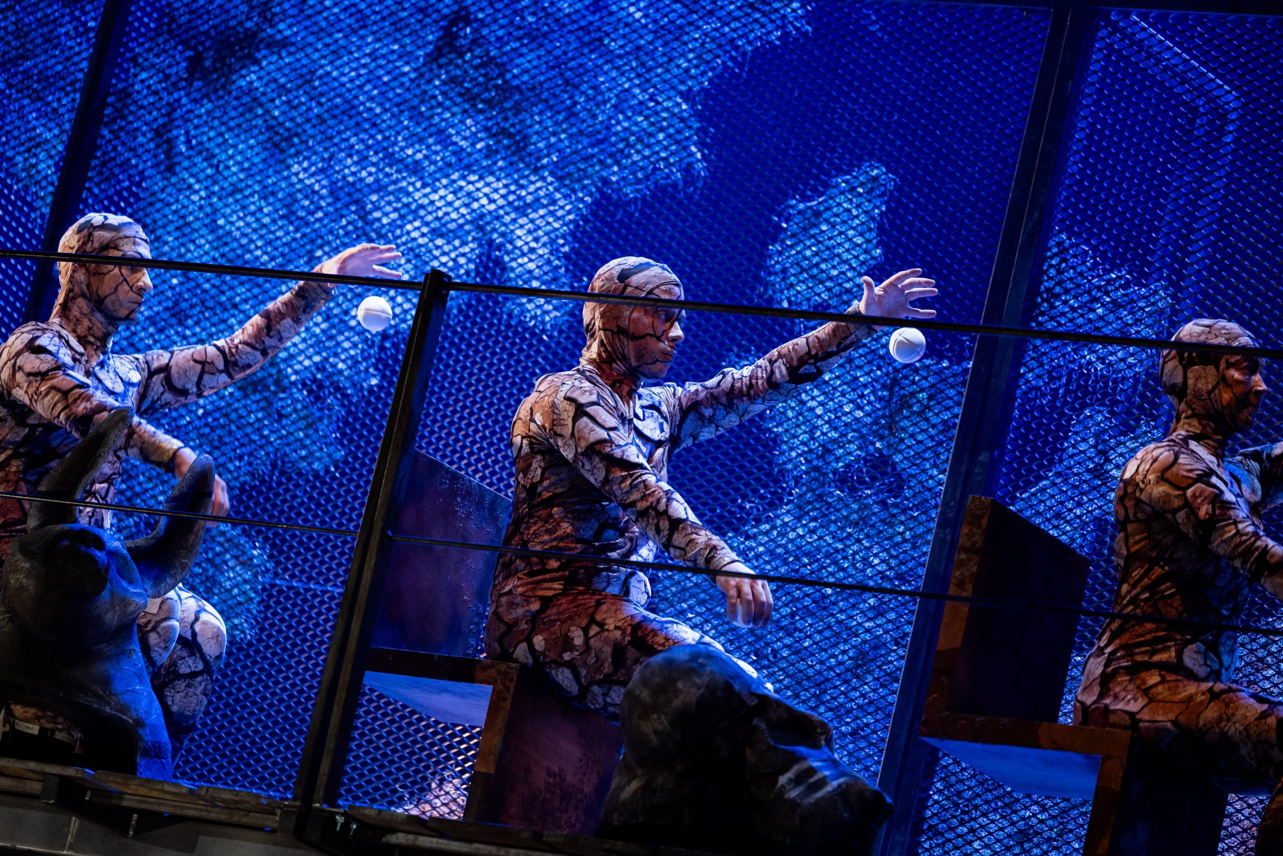 «Эхнатон» в версии Фелима Макдермотта имеет солидную сценическую историю – постановка является эталонной для этой оперы Гласса. Рожденная как копродукция Английской национальной оперы и Оперы Лос-Анджелеса, в 2019 году она была перенесена в Мет, получила и престижную британскую премию Лоуренса Оливье, и «Грэмми»-2022 за «Лучшую оперную запись». Но в Барселоне ее представили впервые. Хотя в ней участвуют главные звезды Mет – американский контратенор Энтони Рот Костанцо (Эхнатон), американский же драматический актер и певец Закари «Зак» Джеймс (Аменхотеп III) и тунисско-канадская меццо-сопрано Рихаб Хаиб (Нефертити). Но были и «новые вводы»: в партии матери Эхнатона царицы Тии дебютировала Катерина Эстрада Третьякова, сопрано российского происхождения, но европейской выучки, а в партии одной из дочерей Эхнатона Нефернефруатон – выпускница Санкт-Петербургской консерватории, впрочем, давно ставшая испанской оперной певицей, меццо-сопрано Марина Пинчук.