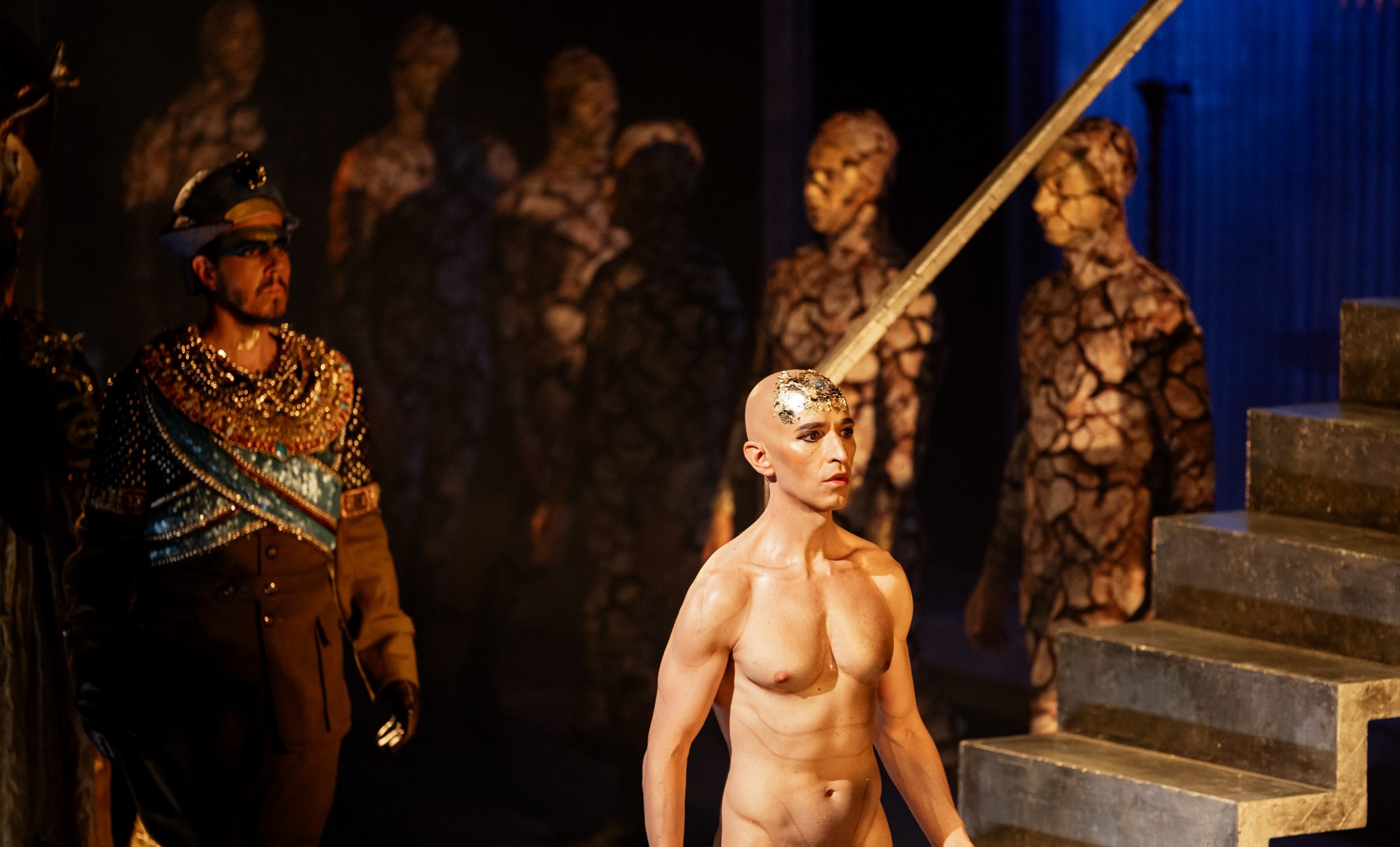 Вокальные партии минималистичны и не нарушают общей атмосферы, все сценическое действо кружится вокруг Эхнатона – могущественного, как сам Бог. Он эффектно появляется – но почти до конца первого акта хранит молчание. А когда он наконец запоет, слушатель невольно встрепенется: неожиданный высокий контратенор в устах могущественного фараона способен вывести из транса.