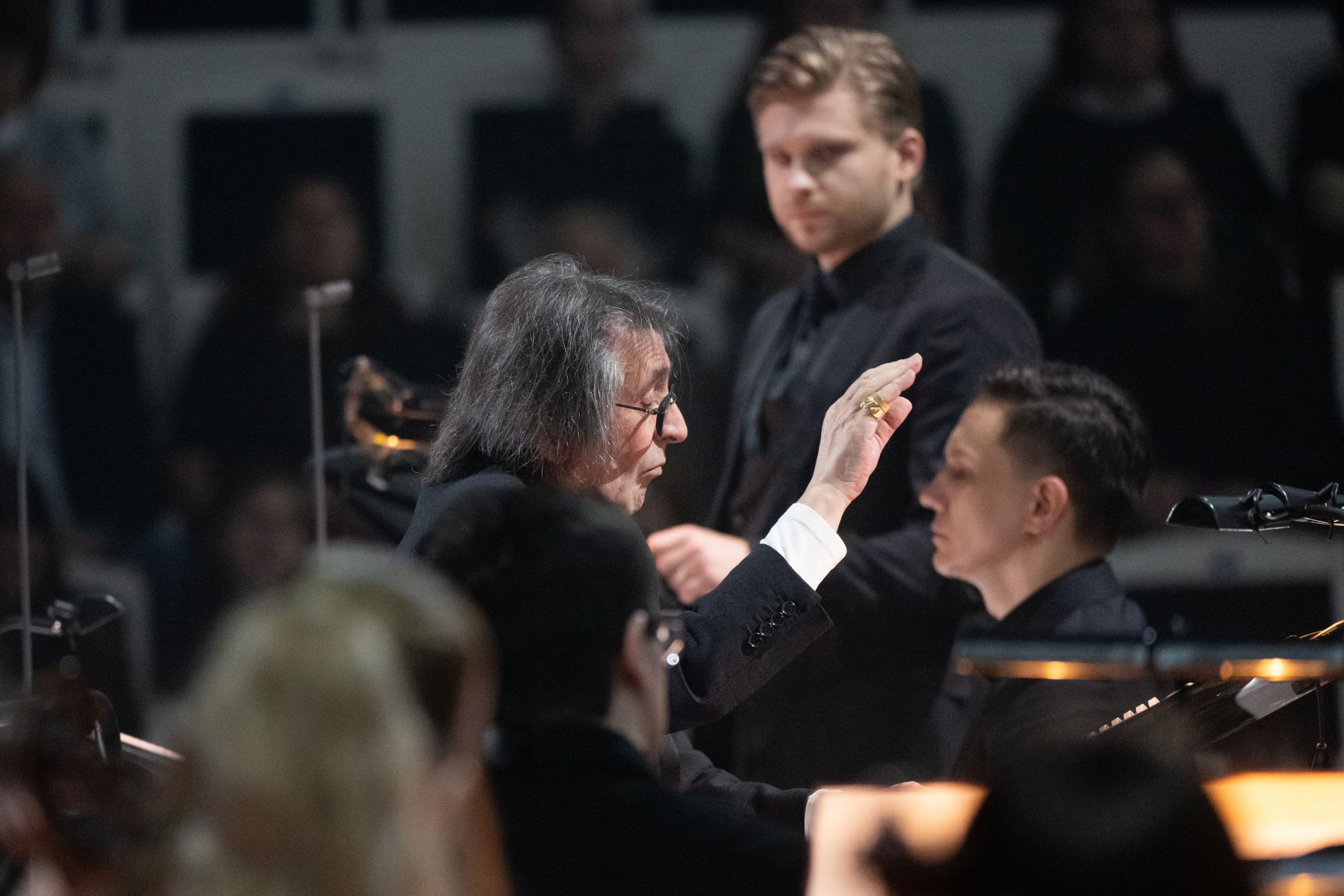 Перед началом погружения в историческое прошлое, перекликающееся с настоящим, публику встречала в фойе КЗЧ выставка фотографий участников Великой Отечественной войны и бойцов специальной военной операции. Многие снимки были не подписаны, но Юрий Башмет считает, что «даже если нет имен, если мы это делаем, мы помним – значит, они живы, пока они в памяти». Впрочем, героев из своих родных и близких маэстро и его коллективы, конечно же, знают и чтят, о чем свидетельствовал «Бессмертный полк» в буклете концерта, – портреты воевавших родственников, в числе которых оказался и дедушка Юрия Абрамовича: «Прошел всю войну, медалей столько, что пиджак невозможно было поднять…»