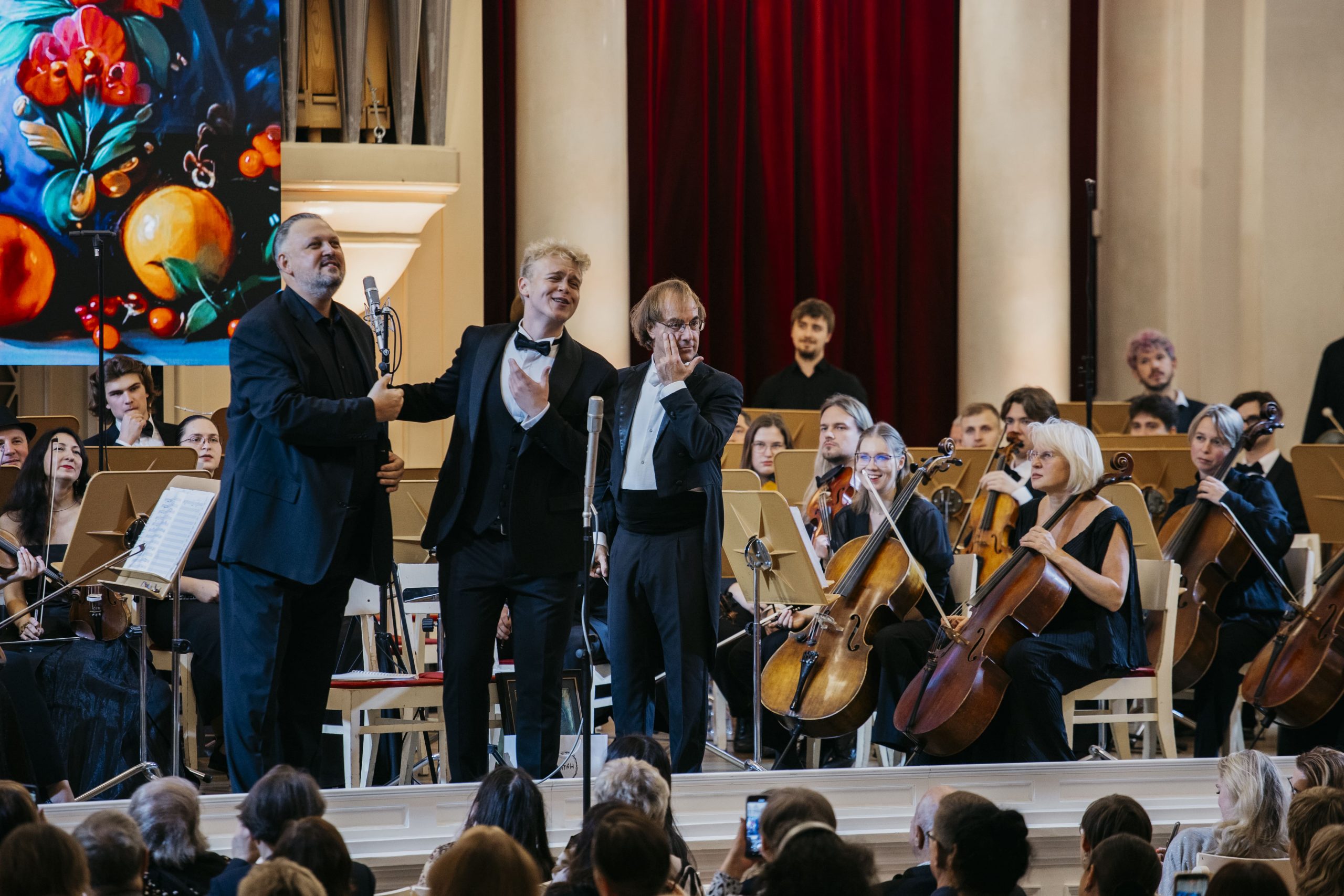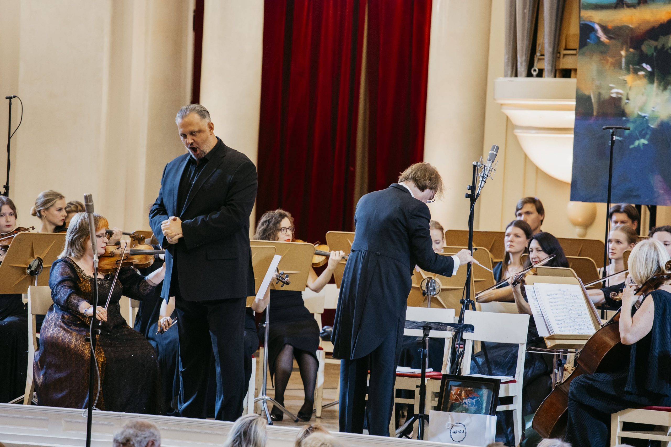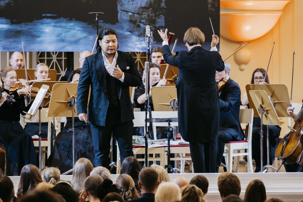 Гала-концерт – а по совместительству и третий тур – прошел в Большом зале филармонии, украшенном по случаю торжества софитами и специальным экраном, транслировавшим имена участников и – во время их выступлений с оркестром – красочные картинки, созданные искусственным интеллектом. В качестве ведущих выступили, как и на первом конкурсе Шаляпина, Людмила Ширяева и Василий Киров.