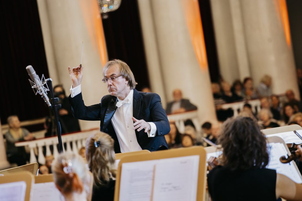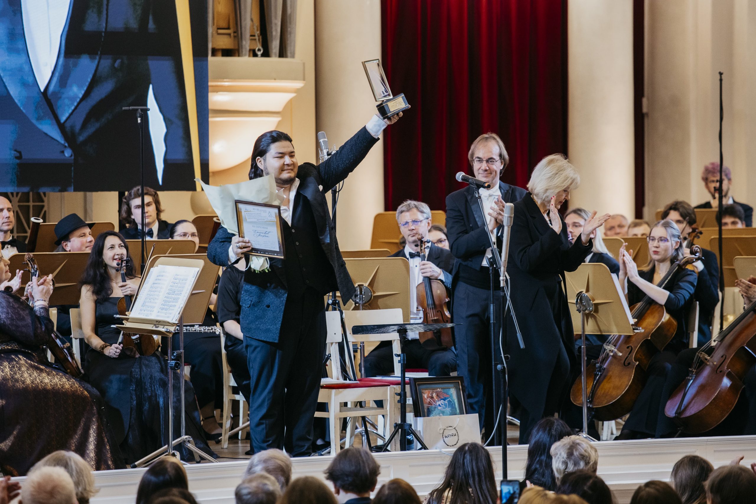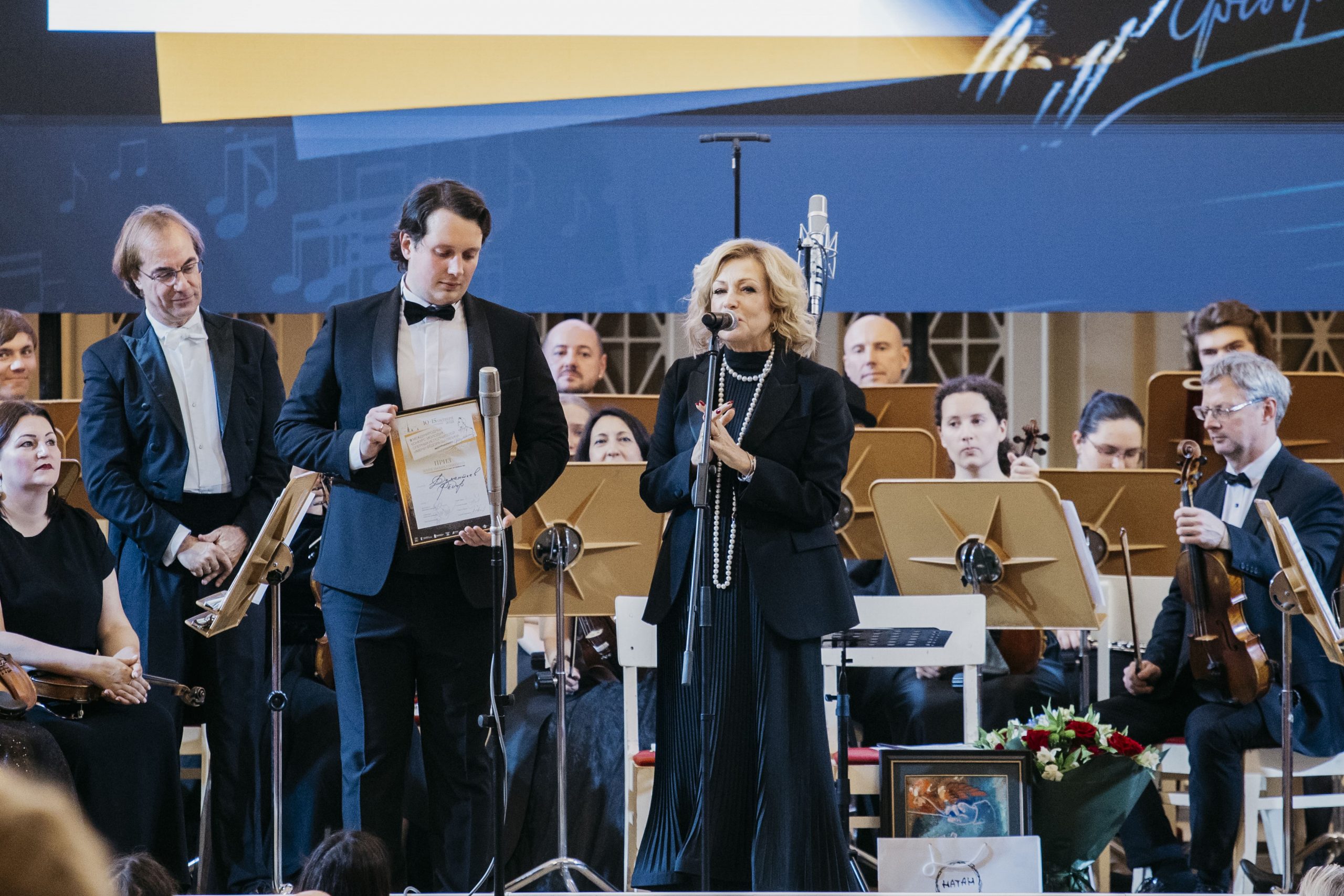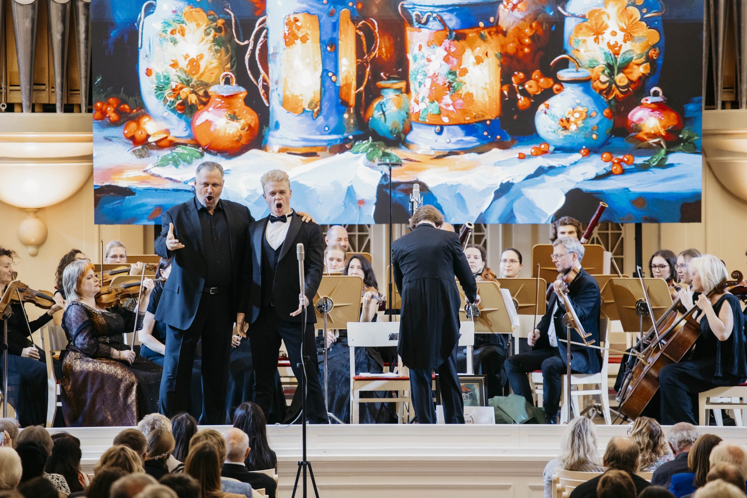 Гала-концерт – а по совместительству и третий тур – прошел в Большом зале филармонии, украшенном по случаю торжества софитами и специальным экраном, транслировавшим имена участников и – во время их выступлений с оркестром – красочные картинки, созданные искусственным интеллектом. В качестве ведущих выступили, как и на первом конкурсе Шаляпина, Людмила Ширяева и Василий Киров.