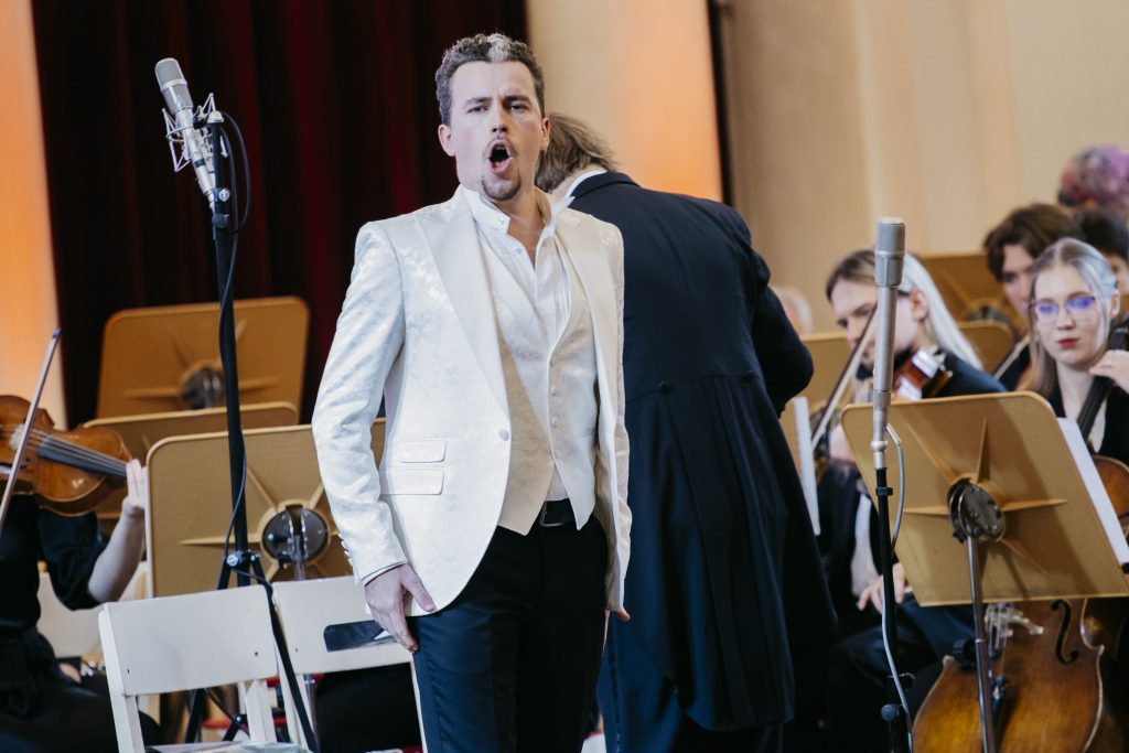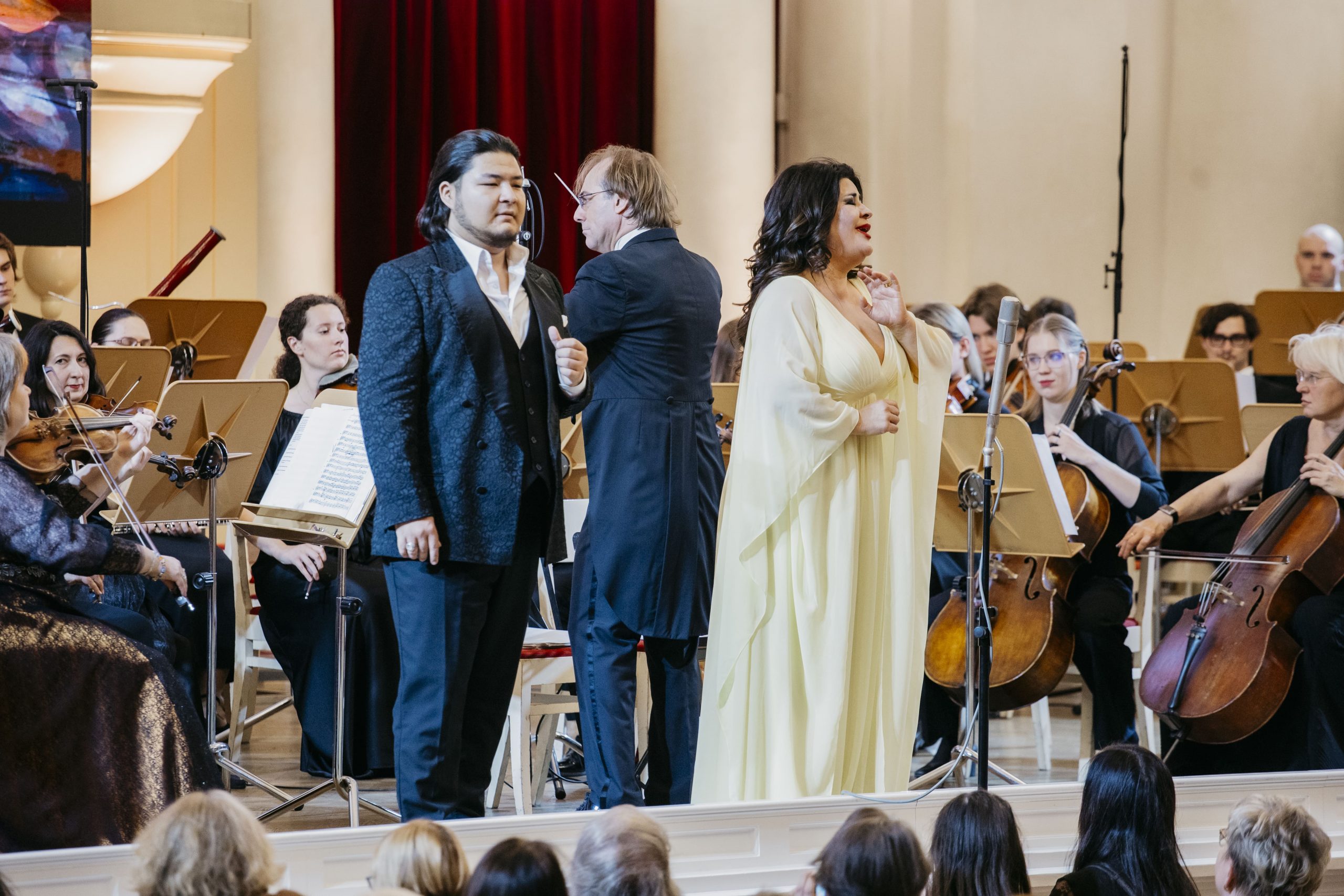 Баритон Мягмарсурэн Хурэлбаатар из Монголии выступил с арией Ренато из оперы «Бал-маскарад» – выбор, безусловно, хороший, для того чтобы показать и героическую, и лирическую грани образа, но певцу не удалось «дожать» их до убедительности. Помешало восприятию и не совсем четкое вступление оркестра – а ведь в этой арии чеканность ритма является стержнем и для певца. Вдохновенным получился Герцог из «Риголетто» в исполнении тенора Тихона Горячева, владельца почти «итальянского», с надрывом, тембра и явного любимца публики. Певец избрал удачный для себя номер – не драматический, но лирический, мягкий – и звучал в нем очень уверенно. Баритон из Казахстана Алихан Бейсеков, обладатель Гран-при конкурса молодых оперных певцов имени Лемешева, решил попытать счастья и здесь. Спойлер: не прогадал. Сцена смерти Родриго из «Дона Карлоса» прозвучала очень достойно и зрело: помимо богатых голосовых данных (какие насыщенные верхние ноты!) видно, что певец очень вдумчивый.