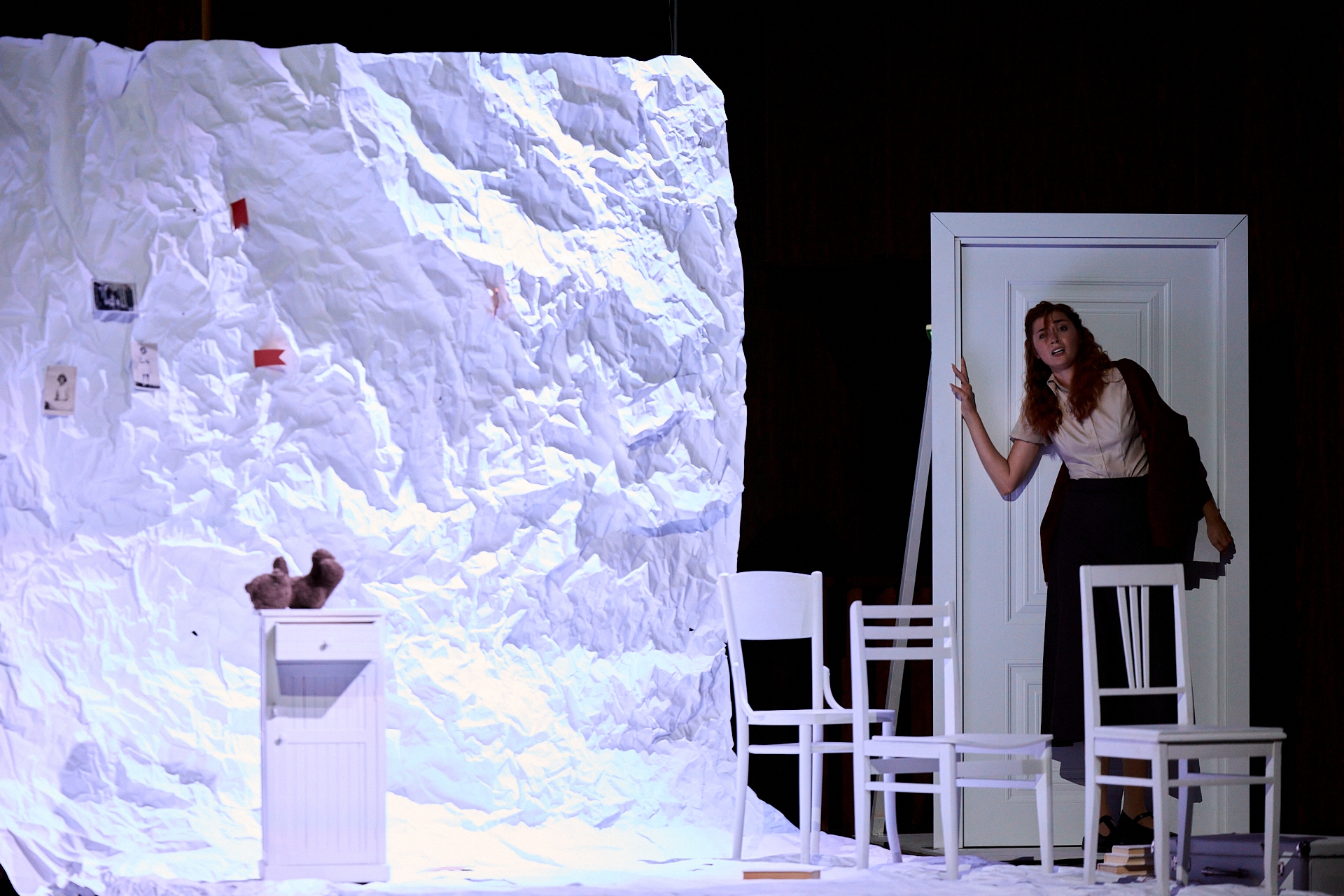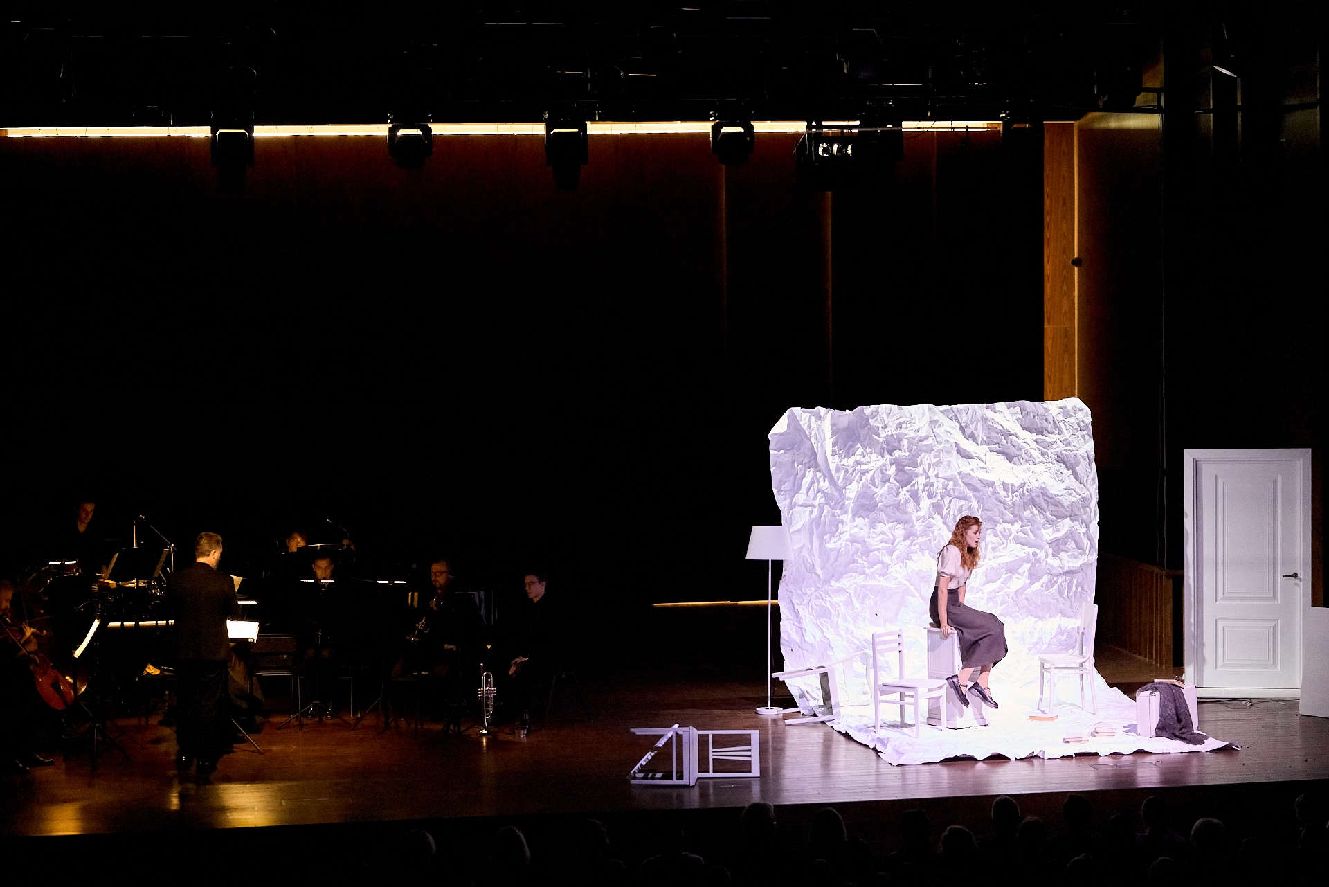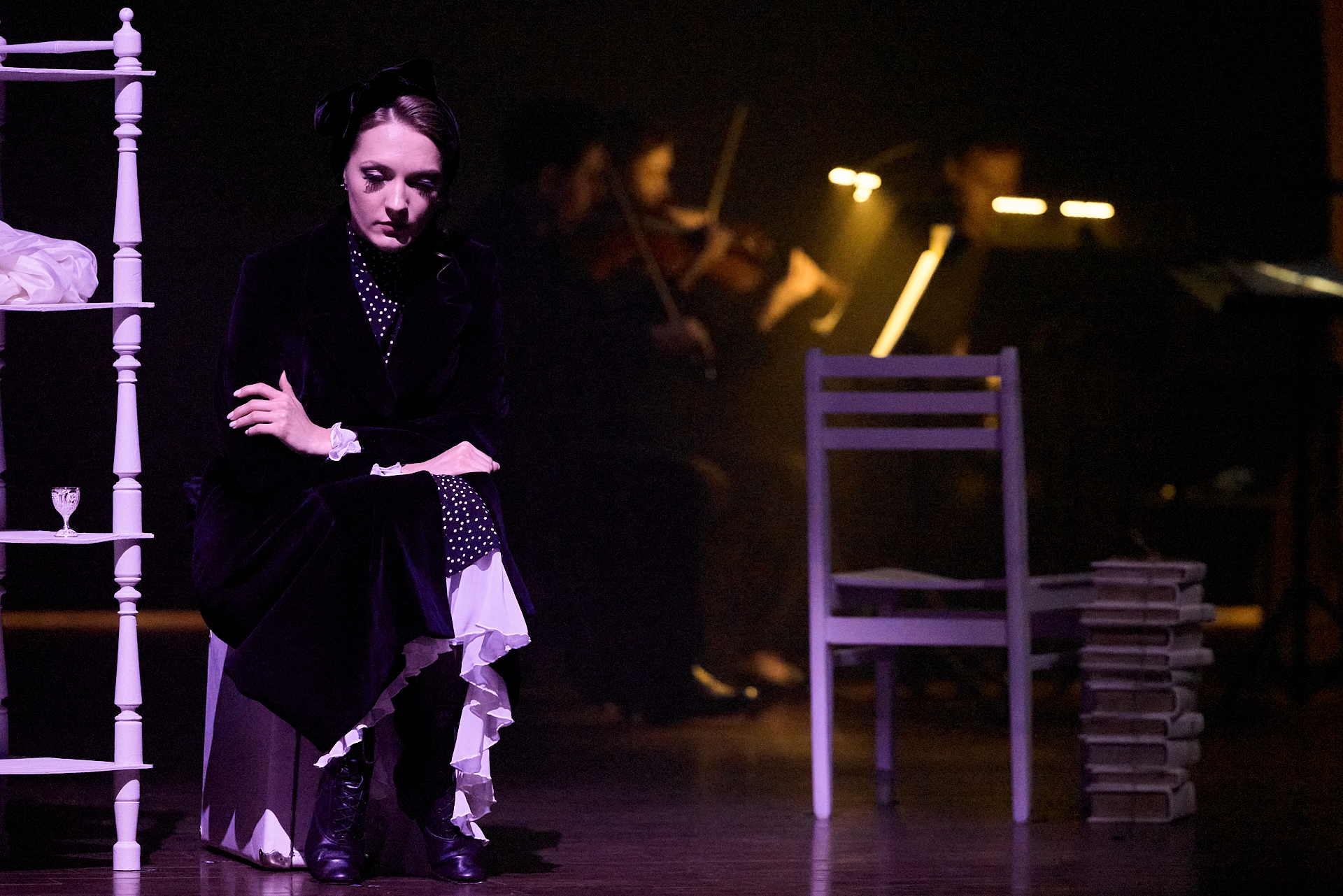 Одна из площадок Нижегородской оперы, Концертный пакгауз и ведет себя театрально, если это необходимо. Для режиссера Анны Саловой (в недавнем прошлом ставившей спектакли в Музыкальном театре Республики Карелия, ныне работающей в Нижнем Новгороде и обратившейся сейчас к «Дневнику Анны Франк») придуманный ею «пролог» к упомянутой моноопере Григория Фрида стал «полем» театральных экспериментов. Хотя главную роль в нем все же играла музыка: «Еврейские эскизы» Александра Крейна и Нонет авторства Владимира Щербачева, ноты которого были предоставлены ансамблем «Студия новой музыки». Сочинения 1909 и 1919 годов Анна Салова поместила в контекст Второй мировой войны, куда они убедительнейшим образом вписались, исполненные инструменталистами La Voce Strumentale и дирижером Владиславом Лавриком в «дымке-видимке» (слегка перефразирую Фета) в глубине сцены. «Аккомпанировали» музыке чередовавшиеся на экране размытые, в духе живописных работ Герхарда Рихтера, фото (бесспорно, стоит отметить и выдающуюся работу художника этой постановки Нины Антроповой): дискриминация евреев, кадры боев, мирная жизнь. Бессловесно солировавшая в Нонете замечательная Мария Калинина (сопрано) проявила себя и как незаурядная актриса, последовательно разыграв несколько сцен: недолгое счастье с любимым (эту роль исполнил артист балетной труппы Нижегородской оперы Егор Воробьев), ушедшим затем на фронт и погибшим, получение «похоронки» и траур по близкому человеку, ставшему одной из многочисленных жертв той масштабной и во всех смыслах разрушительной войны. Героиня Калининой покрывает голову черной повязкой и накрывает стул черным пиджаком, что бросил любимый перед уходом на бойню. Далее – набрасывает на стул белое покрывало, и этот «белый минимализм», собственно, и становится впоследствии, во втором отделении, декорацией «Дневника Анны Франк». За эпизодами «пролога» наблюдает со сцены, иногда эту сцену покидая, девочка (изумительная певица, меццо-сопрано, и человек уникального актерского дарования Яна Дьякова) – одновременно и Анна Ф., и блокадница Таня Савичева: в текстовом основании постановки – фразы из двух дневников. Начальная безнадежность, смирение перед неизбежной горечью судьбы сменяется призывами не терять мужества и убежденностью в том, что жестокость непременно отступит. В жизнях обеих девочек она, как известно, не отступила нисколько. В спектакле финальной точкой стал резко «ударивший» в глаза (зал – битком) белосветный прожектор.