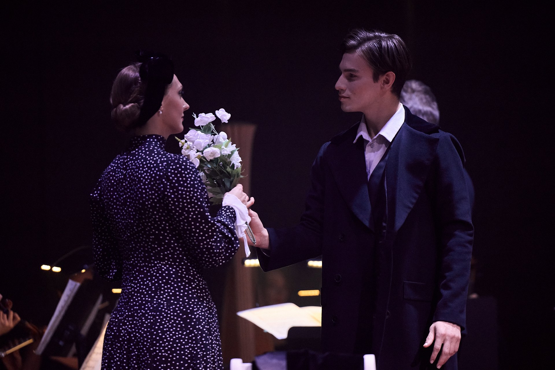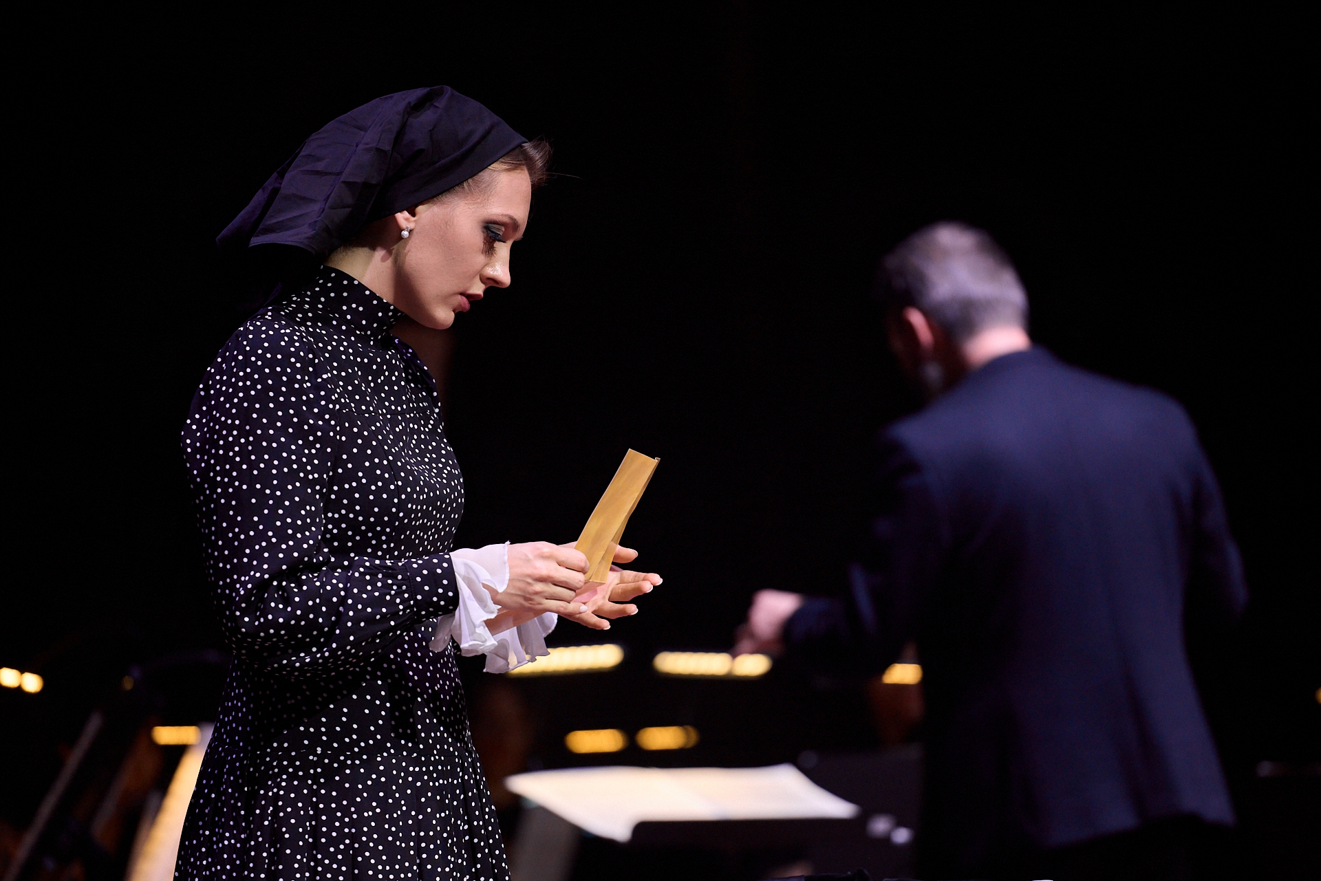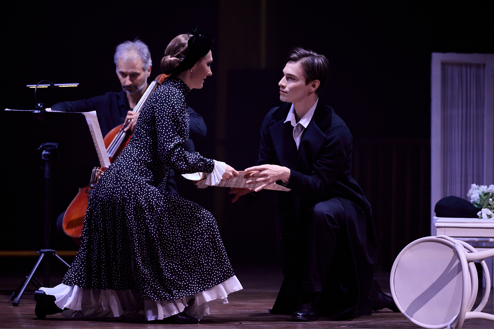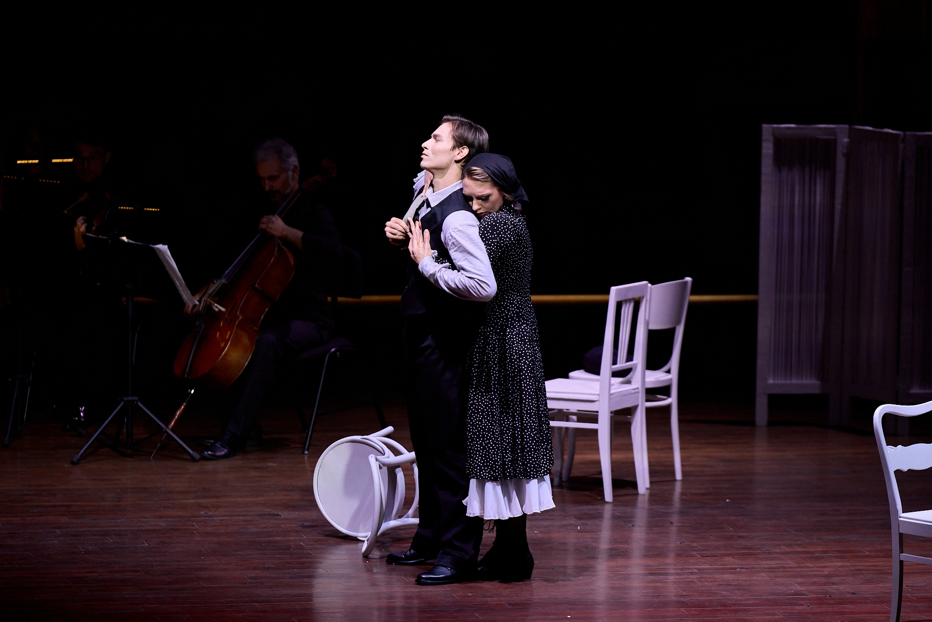 Одна из площадок Нижегородской оперы, Концертный пакгауз и ведет себя театрально, если это необходимо. Для режиссера Анны Саловой (в недавнем прошлом ставившей спектакли в Музыкальном театре Республики Карелия, ныне работающей в Нижнем Новгороде и обратившейся сейчас к «Дневнику Анны Франк») придуманный ею «пролог» к упомянутой моноопере Григория Фрида стал «полем» театральных экспериментов. Хотя главную роль в нем все же играла музыка: «Еврейские эскизы» Александра Крейна и Нонет авторства Владимира Щербачева, ноты которого были предоставлены ансамблем «Студия новой музыки». Сочинения 1909 и 1919 годов Анна Салова поместила в контекст Второй мировой войны, куда они убедительнейшим образом вписались, исполненные инструменталистами La Voce Strumentale и дирижером Владиславом Лавриком в «дымке-видимке» (слегка перефразирую Фета) в глубине сцены. «Аккомпанировали» музыке чередовавшиеся на экране размытые, в духе живописных работ Герхарда Рихтера, фото (бесспорно, стоит отметить и выдающуюся работу художника этой постановки Нины Антроповой): дискриминация евреев, кадры боев, мирная жизнь. Бессловесно солировавшая в Нонете замечательная Мария Калинина (сопрано) проявила себя и как незаурядная актриса, последовательно разыграв несколько сцен: недолгое счастье с любимым (эту роль исполнил артист балетной труппы Нижегородской оперы Егор Воробьев), ушедшим затем на фронт и погибшим, получение «похоронки» и траур по близкому человеку, ставшему одной из многочисленных жертв той масштабной и во всех смыслах разрушительной войны. Героиня Калининой покрывает голову черной повязкой и накрывает стул черным пиджаком, что бросил любимый перед уходом на бойню. Далее – набрасывает на стул белое покрывало, и этот «белый минимализм», собственно, и становится впоследствии, во втором отделении, декорацией «Дневника Анны Франк». За эпизодами «пролога» наблюдает со сцены, иногда эту сцену покидая, девочка (изумительная певица, меццо-сопрано, и человек уникального актерского дарования Яна Дьякова) – одновременно и Анна Ф., и блокадница Таня Савичева: в текстовом основании постановки – фразы из двух дневников. Начальная безнадежность, смирение перед неизбежной горечью судьбы сменяется призывами не терять мужества и убежденностью в том, что жестокость непременно отступит. В жизнях обеих девочек она, как известно, не отступила нисколько. В спектакле финальной точкой стал резко «ударивший» в глаза (зал – битком) белосветный прожектор.