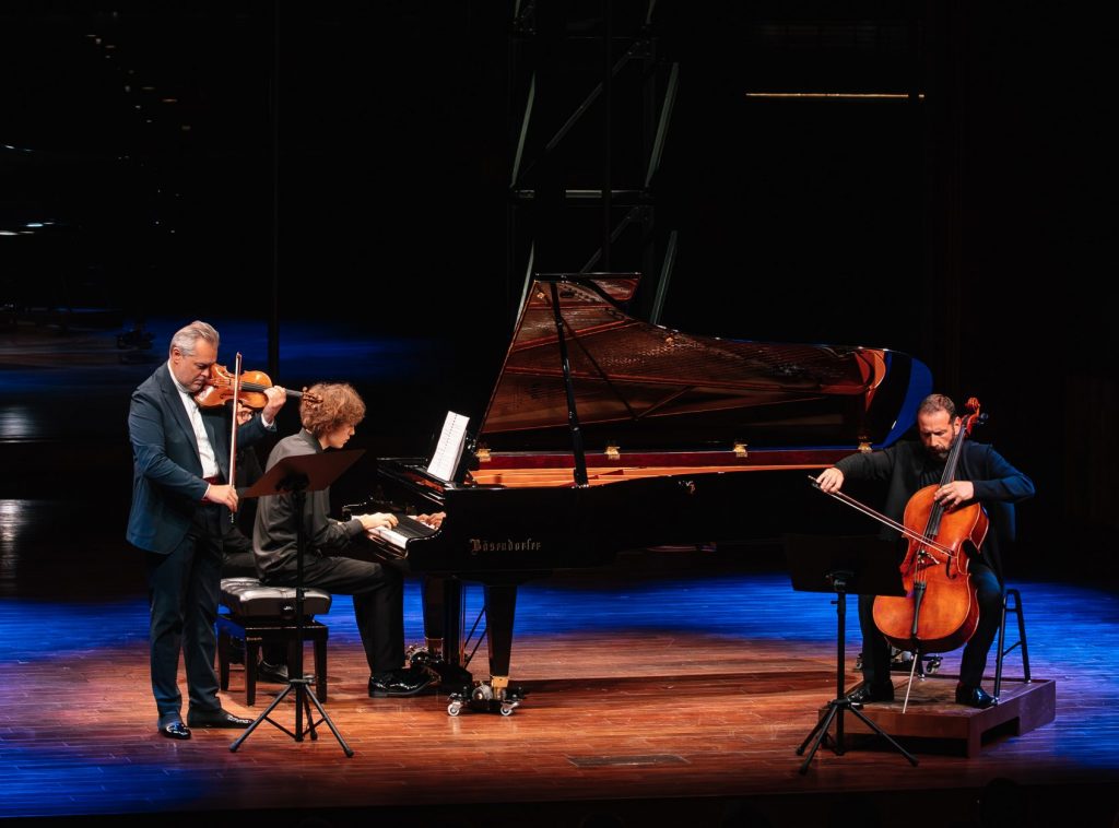 В числе значимых камерных событий последних двух дней фестиваля и совместное выступление юного пианиста, лауреата Второго конкурса имени Рахманинова («серебро») Александра Князева с маститыми Вадимом Репиным и Борисом Андриановым. Не стоит лишний раз говорить о том, что Второе фортепианное трио Шостаковича у Репина и Андрианова в головах и руках. А вот подчеркнуть неожиданную для меня зрелость камерного ансамблиста Князева кажется необходимым. Отмечу и его экстравагантную трактовку Седьмой фортепианной сонаты Прокофьева: предельная нервность, жесткость, временами громоподобность моторики крайних частей соседствовала со срединным (вторая часть) провалом в полнейший релакс, квазилюбительский наигрыш в духе отельных таперов.
