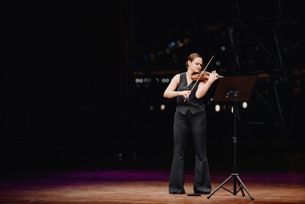 Услышать их все вживую в одном отделении (без сантиментов к музыке Вайнберга в целом, чисто исследовательский к ней подход), циклом – сильный для меня «манок», можно сказать, «лейтмотив» моего неигнорирования концерта с тремя вайнберговскими сонатами для скрипки соло. Написанными в разные годы, стилистически отстоящими довольно прилично друг от друга и не то чтобы в действительности складывающимися в цикл – скорее, повторюсь, мне лично хотелось воспринять таковым эти неэлементарные опусы, к чему-то ведь «завязанные» организаторами фестиваля в концертный «узел».