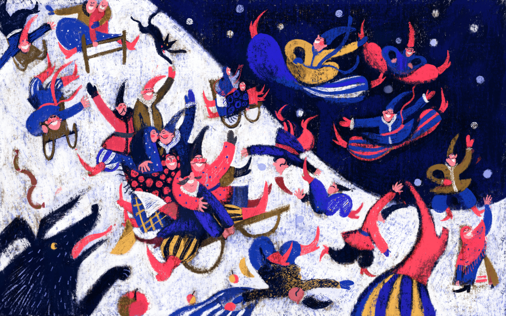 ВЮ Я всегда с нетерпением жду всех сцен, связанных с Чертом и Солохой-ведьмой – с детства испытывал особую слабость к темным, демоническим силам в сказках, особенно если история имеет счастливый финал. В «Ночи» кульминационной считаю сцену, когда языческое Рождество — зимнее солнцестояние – встречается с христианским. Это происходит в конце третьего акта: мы одновременно слышим в отдалении за кулисами мужской хор монахов, исполняющий рождественский гимн, и видим, как звезды и духи природы празднуют появление Коляды и Овсеня. Я воспринимаю этот эпизод как мистическую вершину всего произведения.