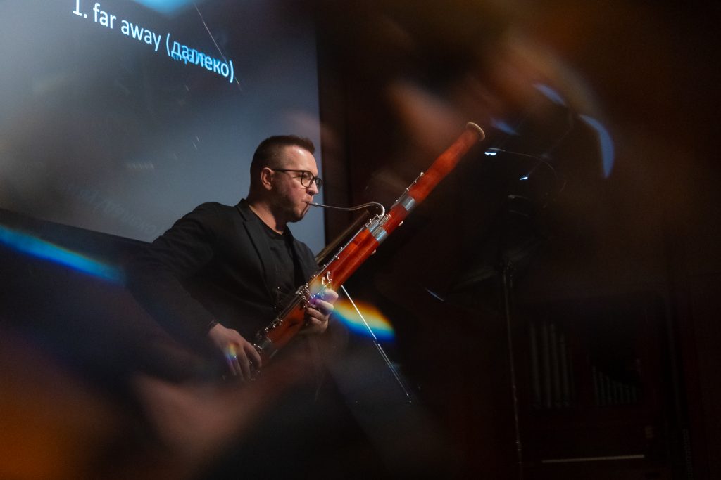 За ангелом Васкса последовал «Ангел» Константии Гурзи для фагота соло (2022). Подзаголовок сочинения, Six Miniatures for Peace, переведен в буклете как «Шесть миниатюр для мира», но мне кажется, что вариант «во имя мира» (или «ради мира») был бы точнее, имея в виду смысл английского peace (в отличие от world). Малоизвестная в наших широтах, живущая в Германии уроженка Афин Константия (не Констанция!) Гурзи (р. 1962) весьма заметна на европейской культурной сцене как композитор и дирижер. Интонационный мир ее музыки – диатоника с характерным, условно говоря, византийским оттенком. Такой оттенок органично соответствует миниатюрам, вдохновленным, по словам автора, размышлениями о далеко не мирной истории и о культуре Балкан (заметим в скобках, что в последнем номере цикла, озаглавленном «Пение», это «византийское» начало вдруг – конечно, без всякого умысла со стороны автора – оборачивается мотивом песни «Подмосковные вечера»). Пьесы Гурзи прозвучали в увлеченном и экспрессивном исполнении Александра Пуленкова.