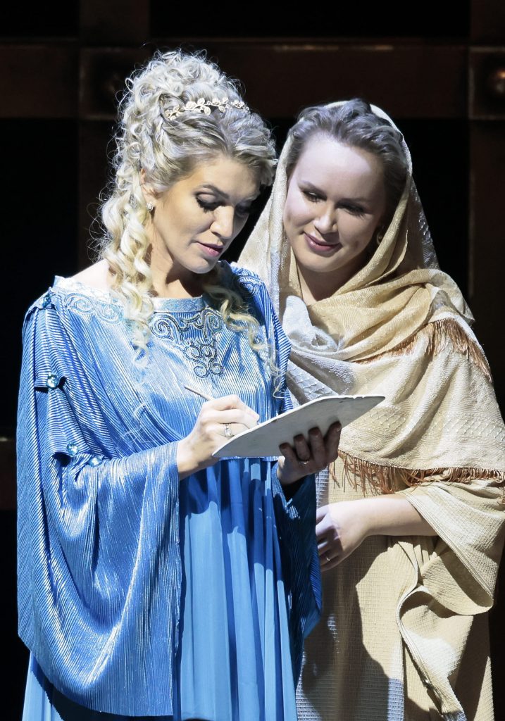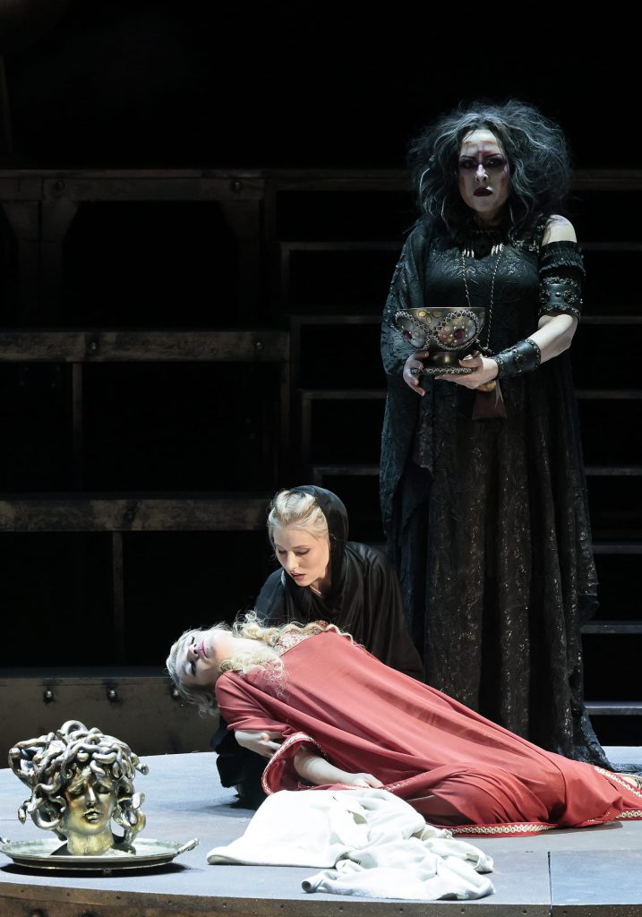 Постановка Ивановой все так же выглядит максимально традиционно и академично – она точно понравится консерваторам. Такое решение продиктовано в том числе и новизной материала: для второй в этом столетии интерпретации «Сервилии» другого решения, наверное, и не нужно. Хотя режиссер позволила себе в нескольких эпизодах чуть-чуть отступить от композиторского либретто. Например, в конце четвертой картины после счастливого спасения Сервилии Неволеей от заточения на сцене неожиданно возникает волшебница Локуста, с появления которой картина начиналась. Она угощает девушку ядом, и та падает замертво. Придуманный Ивановой ход неслучаен: исторический персонаж Локуста на самом деле была не колдуньей, а профессиональной отравительницей, пользовавшейся покровительством римского императора Нерона. Так что с ее помощью жестокий властитель намеренно убивает-устраняет Сервилию, дочь сенатора Сорана, находящегося в оппозиции к правителю. Потому и большая сцена смерти постепенно угасающей героини в пятой картине, и ее переход в христианство в спектакле Ольги Ивановой выглядят более оправданными и не такими условными, как если бы все шло в соответствии с замыслом Римского-Корсакова. Режиссер и художник, начиная с эпизода у Локусты, помещают деву в большой магический круг: будто заколдованная, она теперь в своем мире, из которого не может вернуться в реальность и общаться со своими близкими – женихом Валерием или отцом. Словно балетная сумасшедшая Жизель, Сервилия тщетно трогает руками пространство и воздух, находясь под куполом круга-шара, не дающего ей снова стать простой смертной.