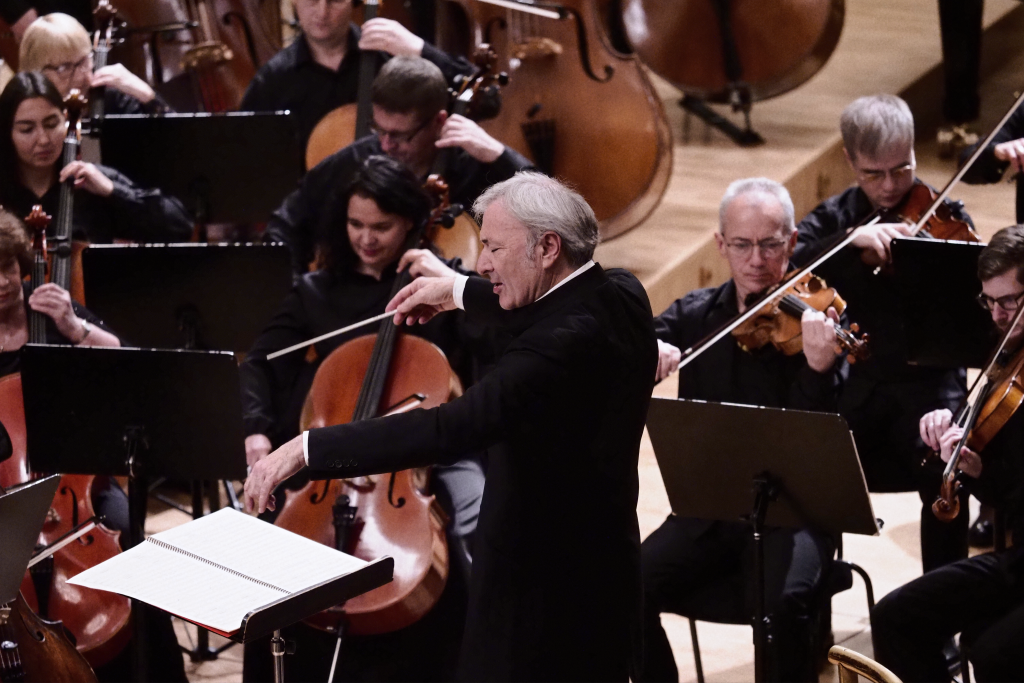 Александр Сладковский отметил в нашем разговоре перед выступлением, что никогда ранее не дирижировал этот опус, не погружался в «интимный разговор автора с самим собой». Сергей же, для которого, с его слов, «современная музыка в целом является своего рода духовной практикой», написал мне, что будет пытаться во время исполнения Introitus «войти в роль проповедника и клирика», попасть в этой музыке в атмосферу «молитвенного фона». Не возьмусь оценивать со своих на сей счет «колоколен», в какой степени Сергею удалось все это метафизически осуществить. Но физически, пианистически, музыкантски он был абсолютно убедителен, прекрасно понимая, чему в точности дает сейчас новую сценическую жизнь, и не позволяя себе никаких самопревозношений над оркестром (где я особенно отмечу в данном случае исполнителей флейтовой и фаготовой партий, идеально воспроизведших мученические, заложенные Губайдулиной в партитуру концерта, интонации) и музыкой. Сдержанно, словно ощущая незримое присутствие в зале великого композитора и человека, вел себя за дирижерским пультом и Александр Сладковский.