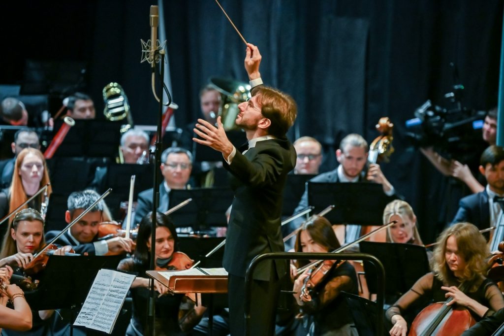 После такого светлого и оптимистического пролога резким контрастом (как и задумывалось, очевидно) стал Первый виолончельный концерт Шостаковича. Вот здесь можно было оценить качественный рост игры челябинского симфонического оркестра: графичность звучания, точность вертикали, отличные соло деревянных духовых, почти «железная» коммуникация с прекрасным солистом – Александром Раммом. По его словам, он довольно поздно подступился к этой партитуре, требующей огромного эмоционального напряжения: «Если ты в конце не схватил смычок в кулак, значит ты энергетически до конца не выложился». В этот вечер с накалом страстей все было по верхней планке, и показалось, что музыканты уловили главное: в этом сочинении композитор мысленно вновь прокручивал все те ужасы, страхи, моральное унижение, которые ему пришлось перенести в жизни. В первой части концерта вместе с солистом много реплик поручено валторне, которая словно «высмеивает» виолончель. С этой непростой задачей отлично справился Андрей Симонов.