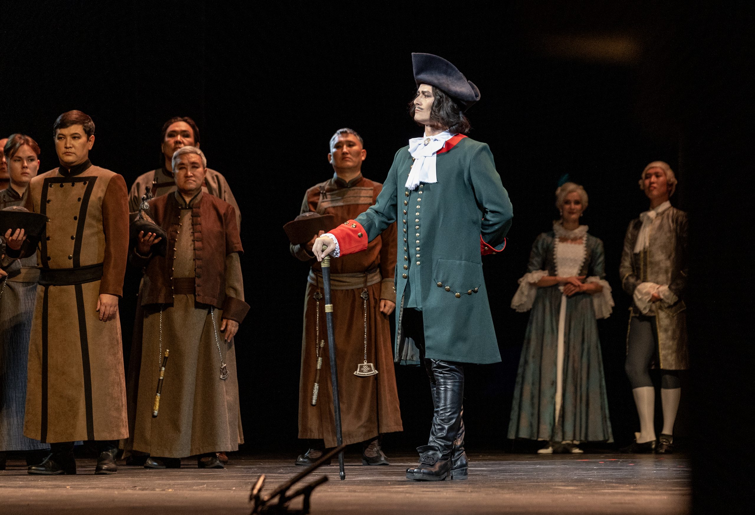 Такая своего рода застывшая в монолите величественность также отличает режиссуру Олега Юмова. В проникновенных дуэтах Эреэхэн (Билигма Ринчинова) с Нагалом (Жамсо Бамбагаев) угадываются бурятские протяжные песни. Как кажется, опера в принципе уделяет большее внимание обычаям и нравам бурятов, чем показу исторических событий. Сама же встреча с Петром I проходит как бы вскользь, служа лишь поводом включить в действие стилизованные под Рамо европейские бальные танцы (хореограф – Алиса Шикина). Это была и наиболее интересная картина с точки зрения оркестрового исполнения, где дирижер Илья Норштейн с явным удовольствием и вниманием подчеркивал красочные соло.